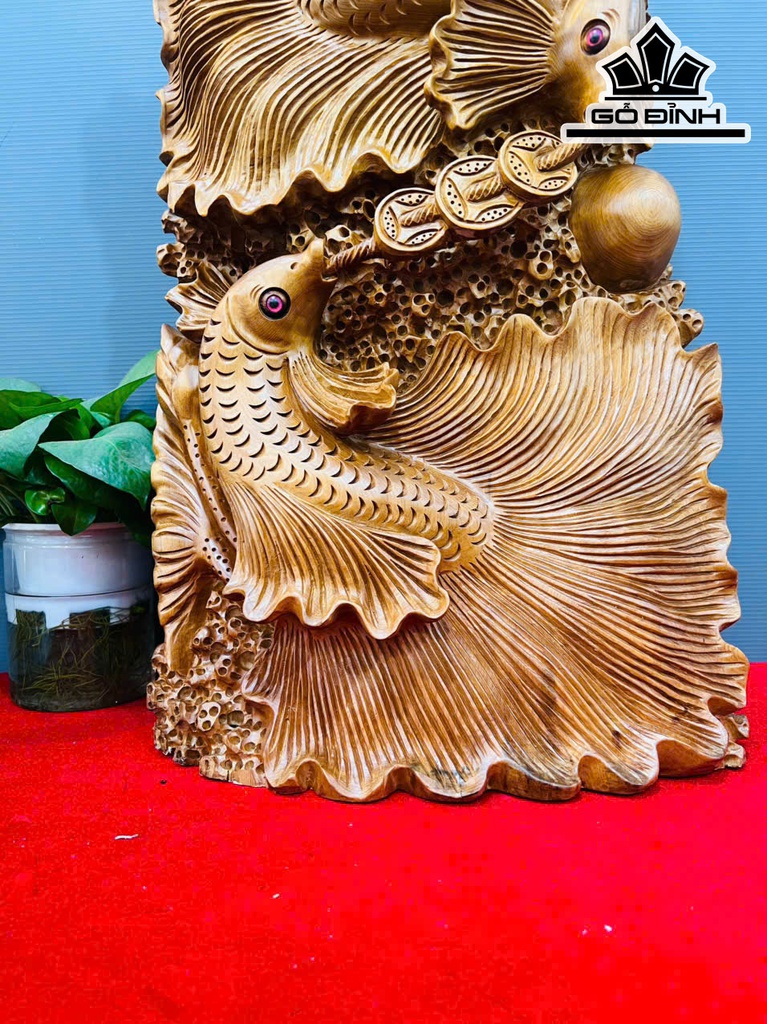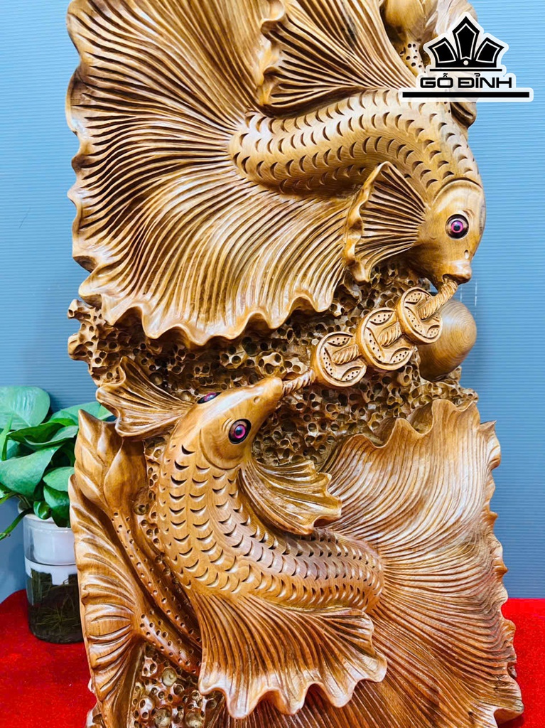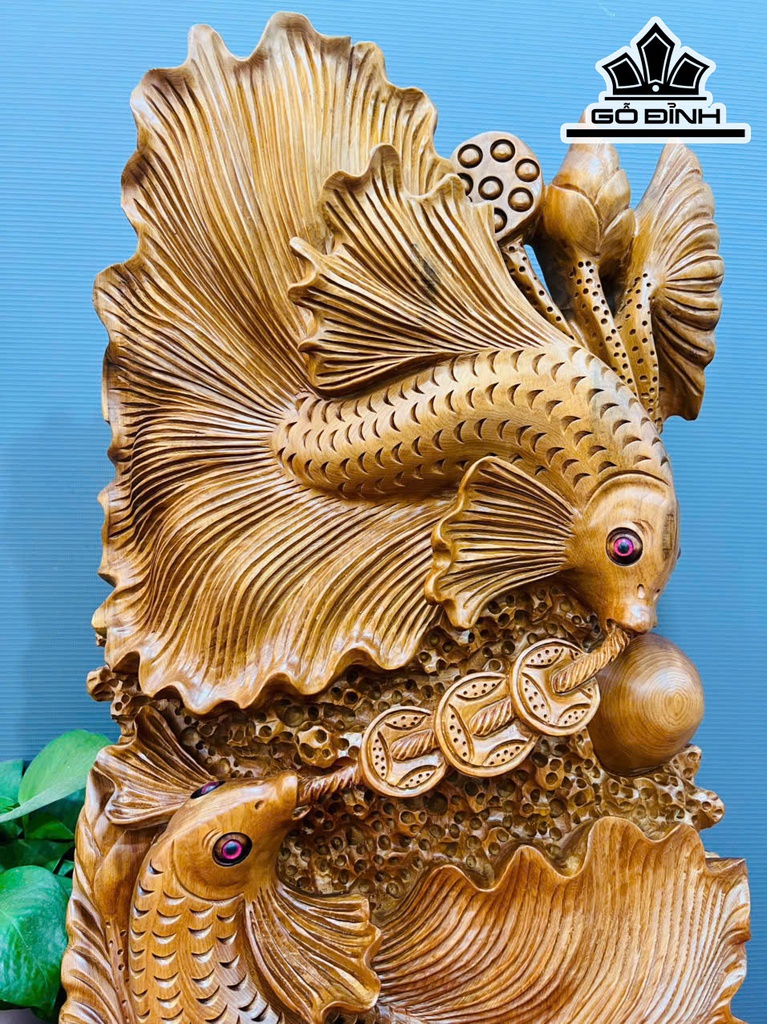 Tượng Cá Xiêm Đôi Gỗ Ngọc Am