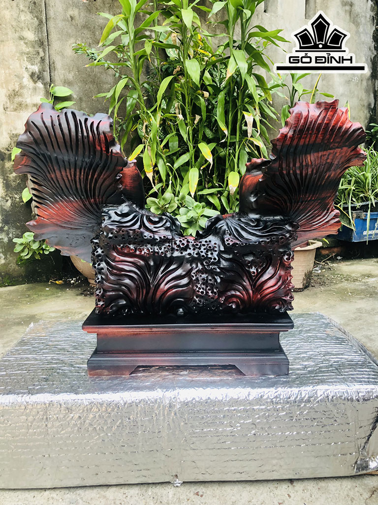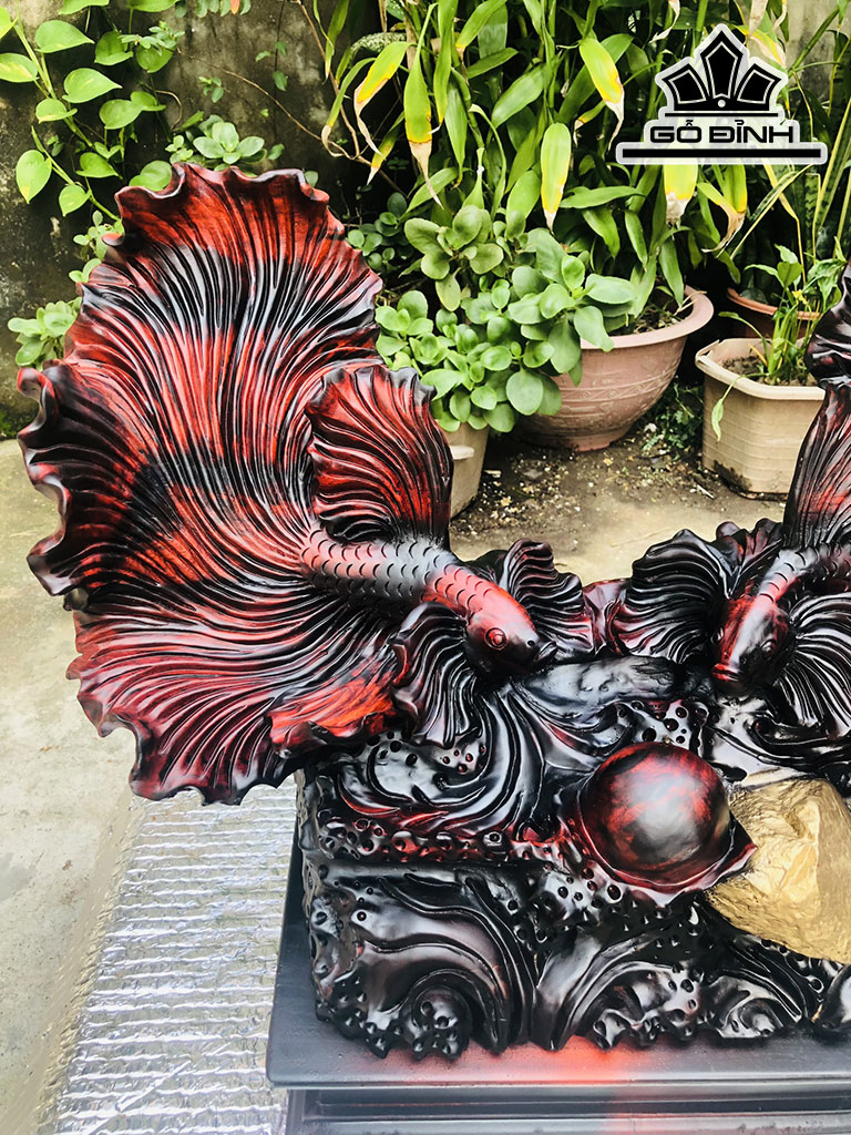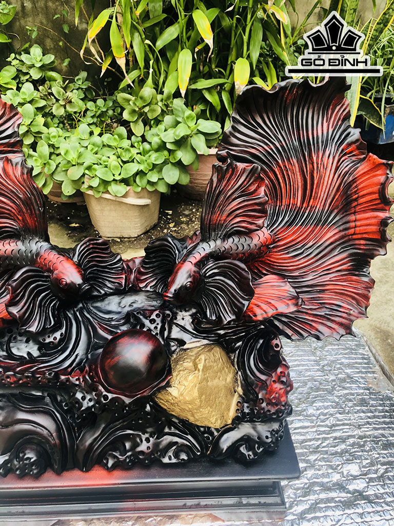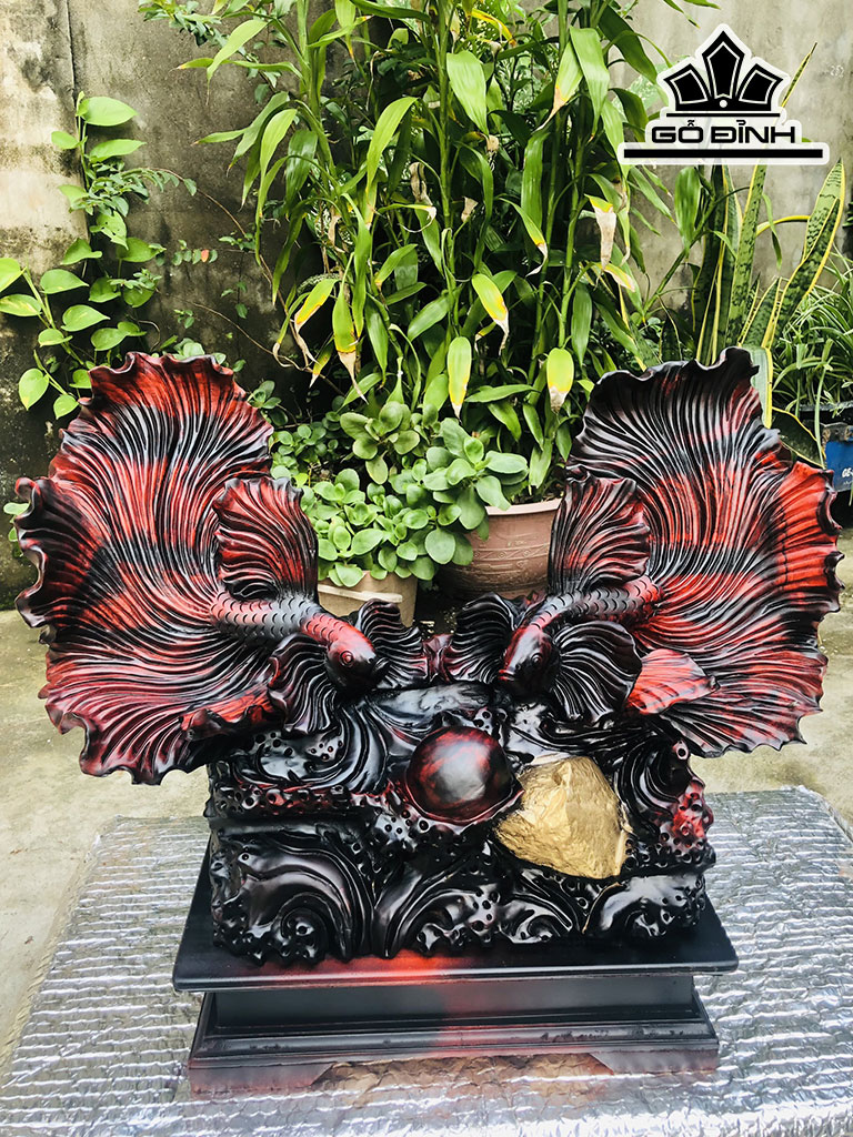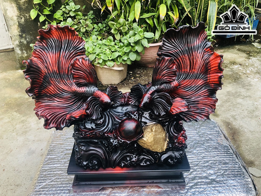 Tượng Cá Xiêm Đôi Gỗ Trắc Cao 45 Ngang 57 Sâu 26 (cm)
