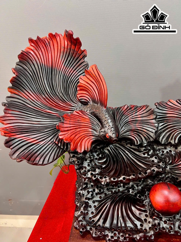Tượng Cá Xiêm Đôi Gỗ Trắc Cao 52 Ngang 77 Sâu 28 (cm)