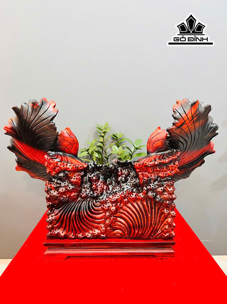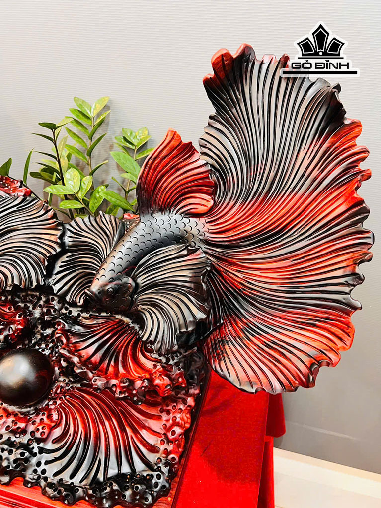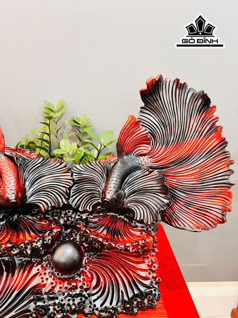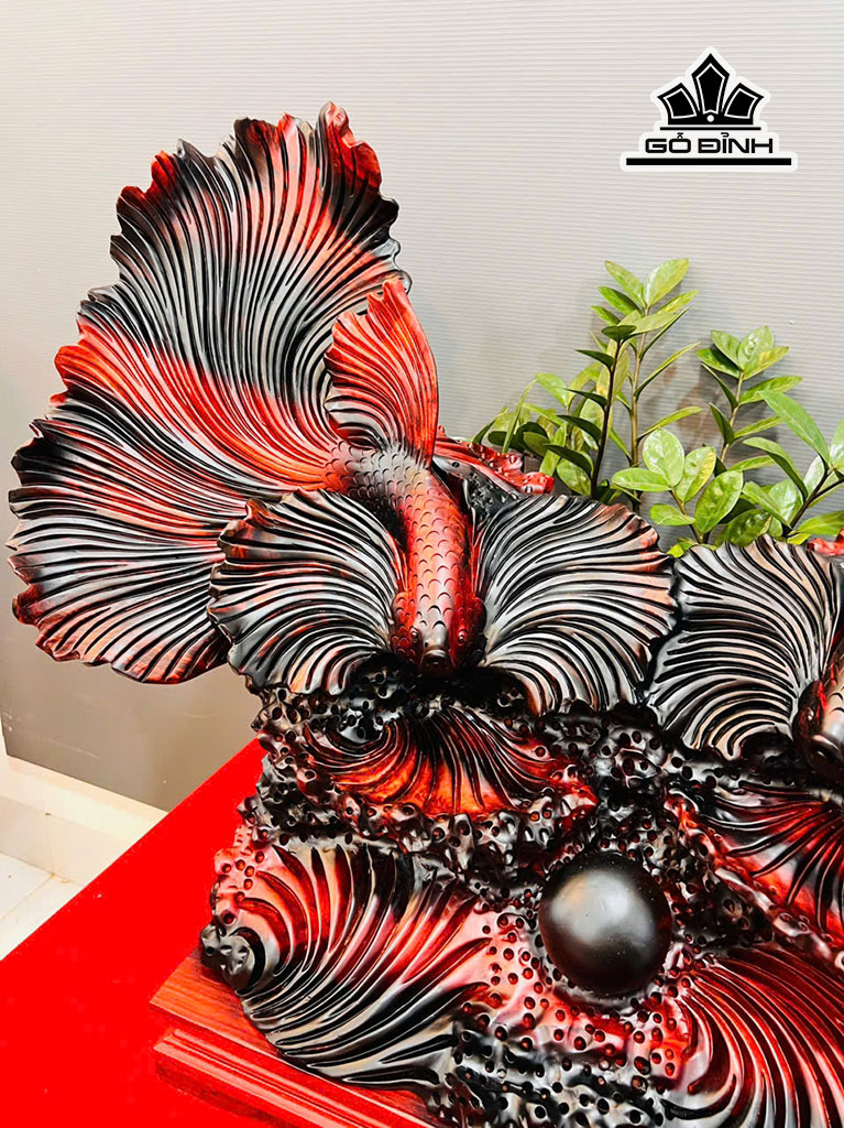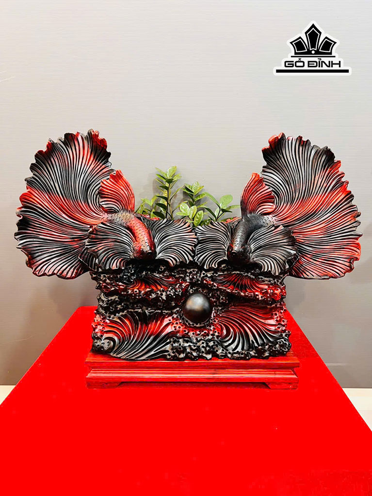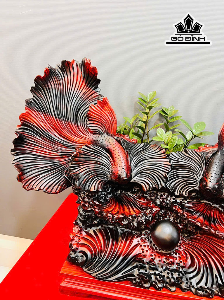 Tượng Cá Xiêm Đôi Gỗ Trắc Cao 54 Ngang 78 Sâu 30 (cm)