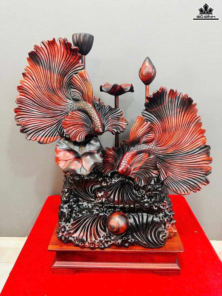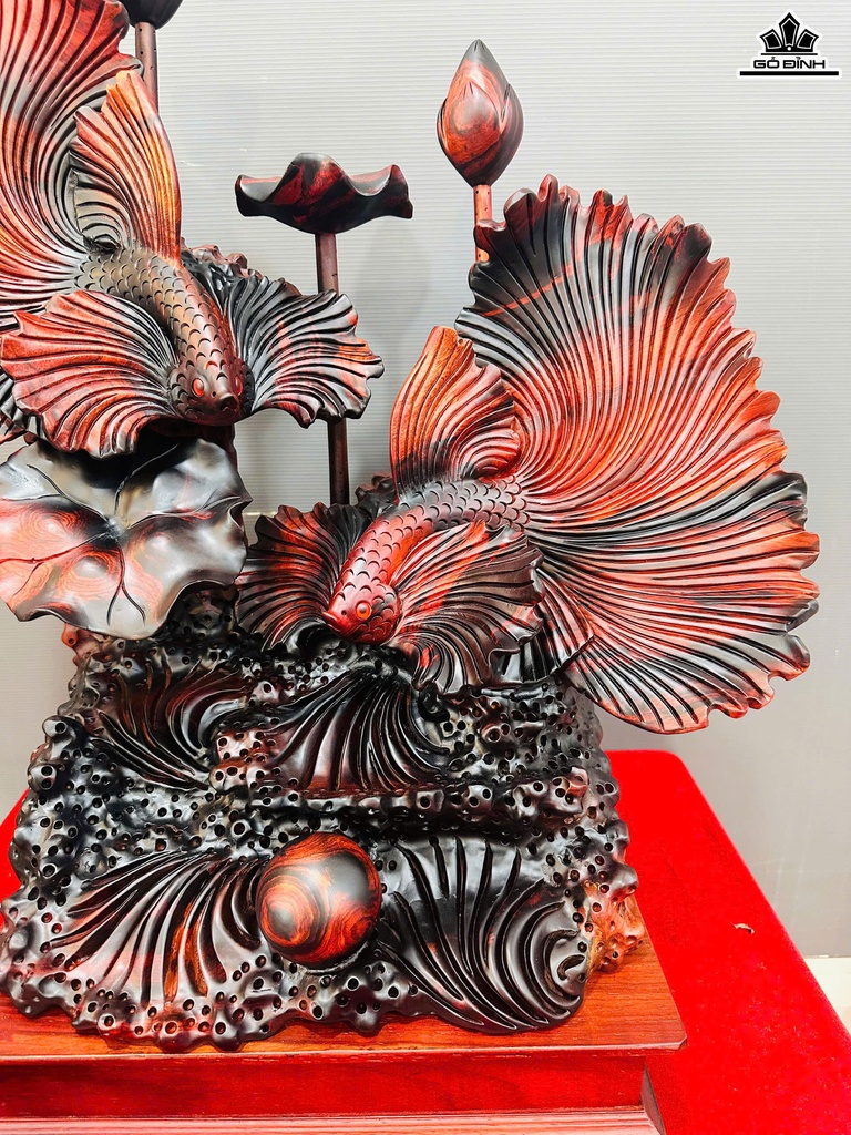 Tượng Cá Xiêm Đôi Gỗ Trắc Cao 72 Ngang 62 Sâu 30 (cm)