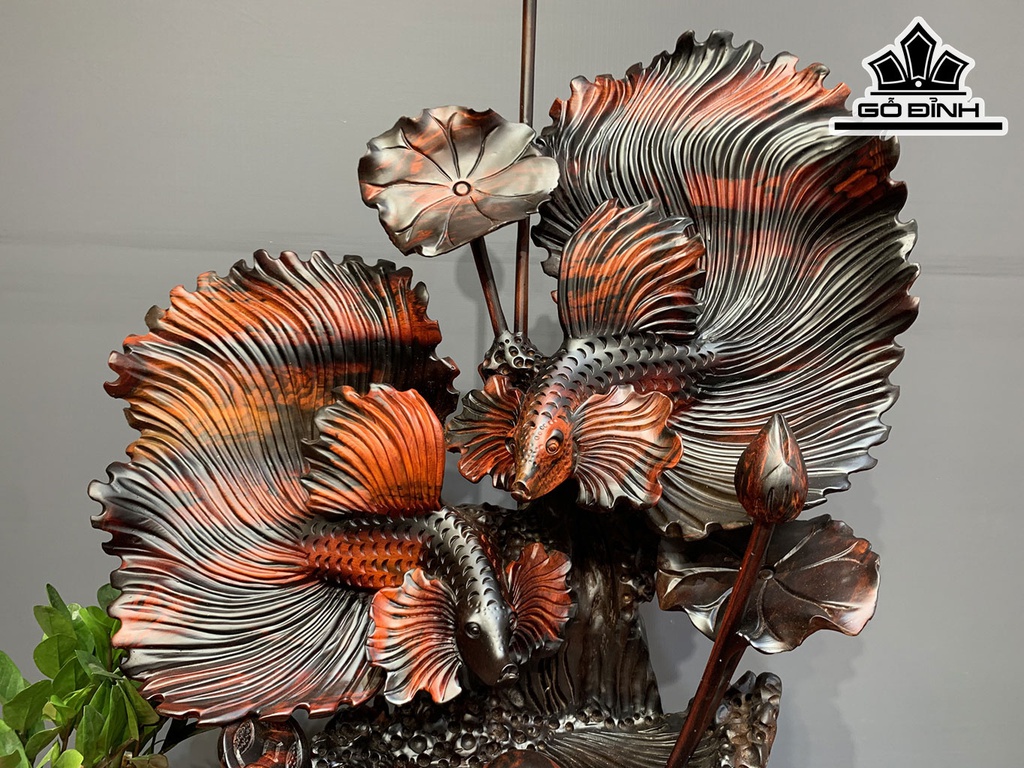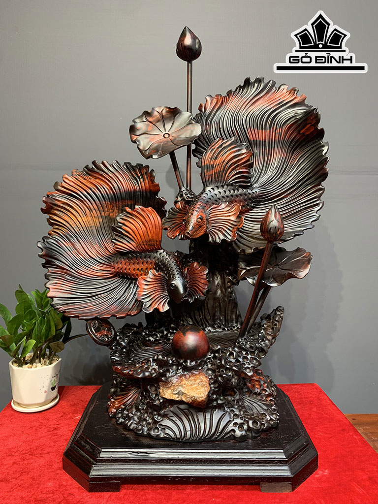 Tượng Cá Xiêm Đôi Gỗ Trắc Cao 79 Ngang 42 Sâu 32 (cm)