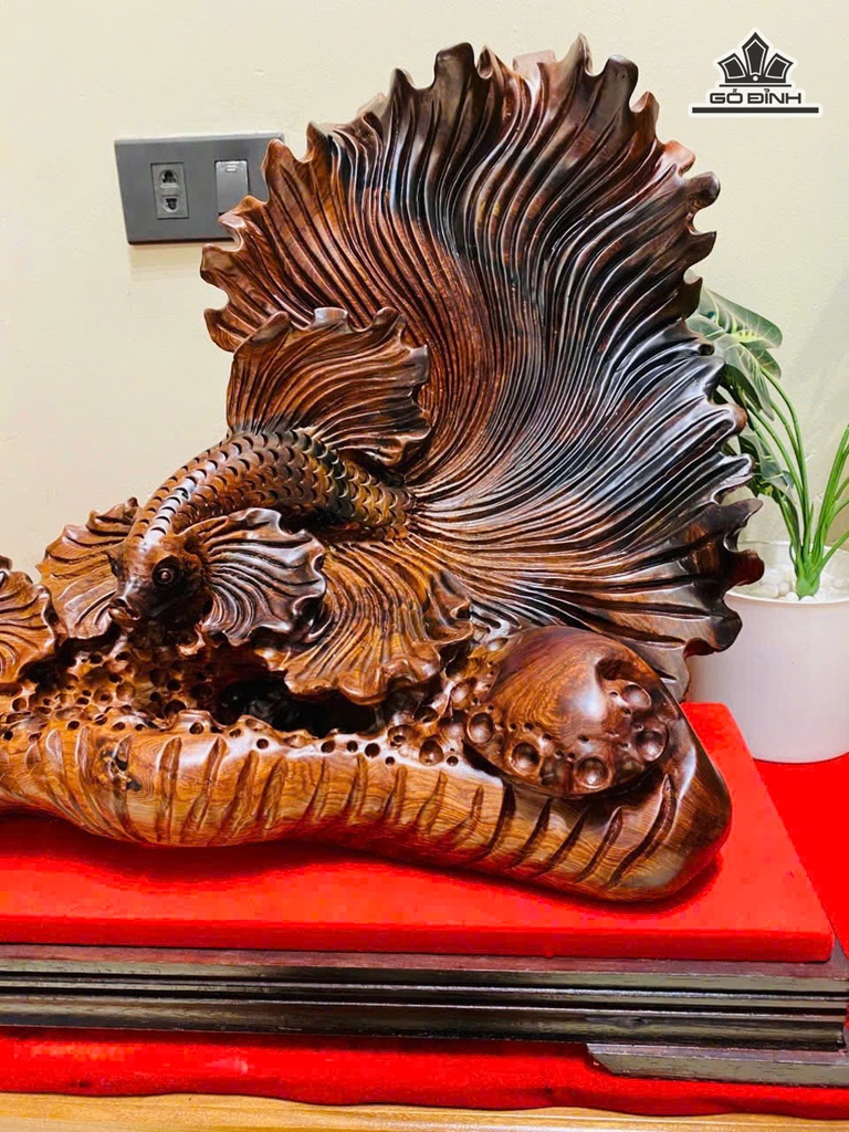 Tượng Cá Xiêm Gỗ Cẩm Cao 36 Ngang 56 Sâu 24 (cm)