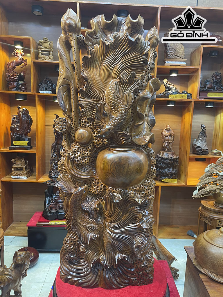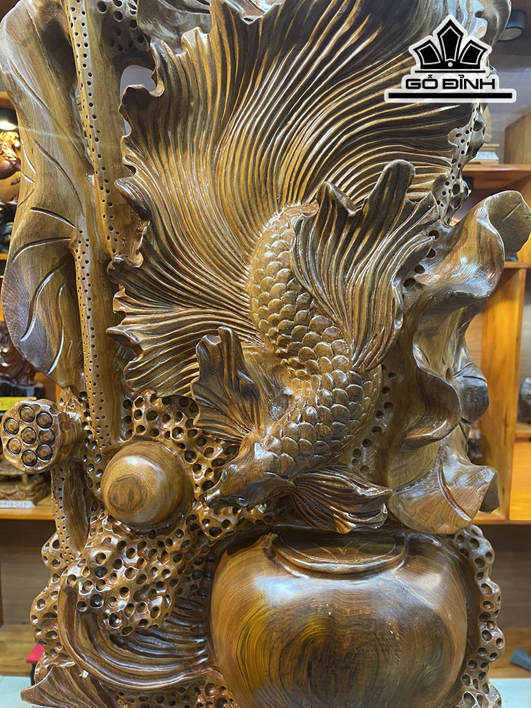 Tượng Cá Xiêm Gỗ Ngọc Am Cao 110 Ngang 43 Sâu 20 (cm)