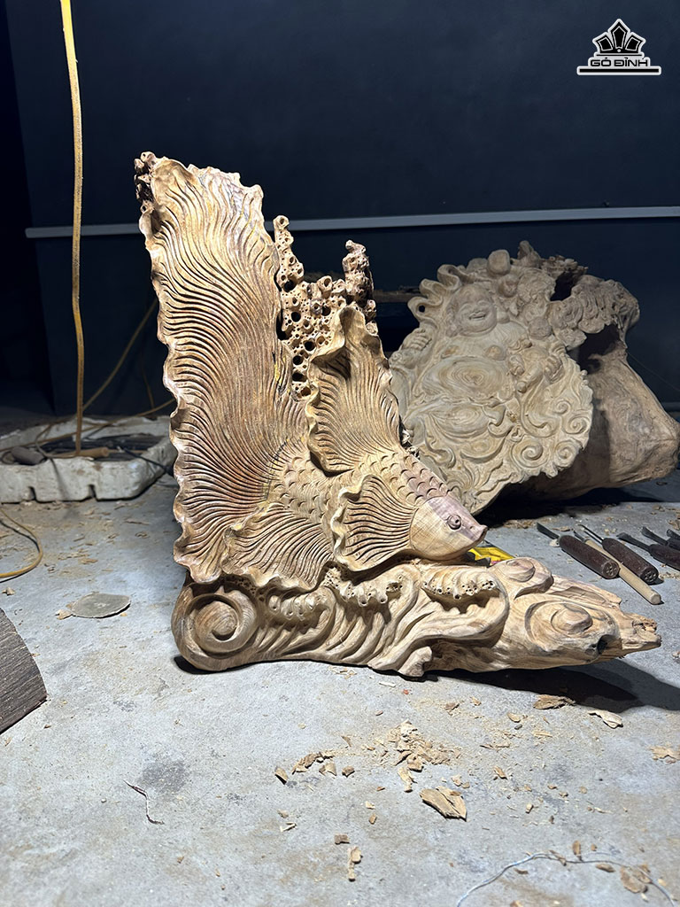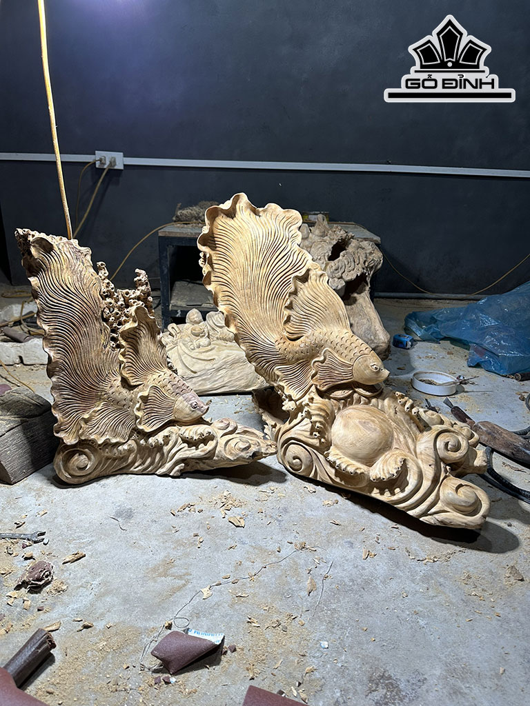 Tượng Cá Xiêm Gỗ Ngọc Am Cao 47 Ngang 42 Sâu 14 (cm)