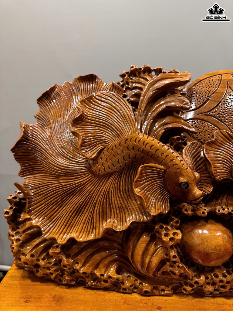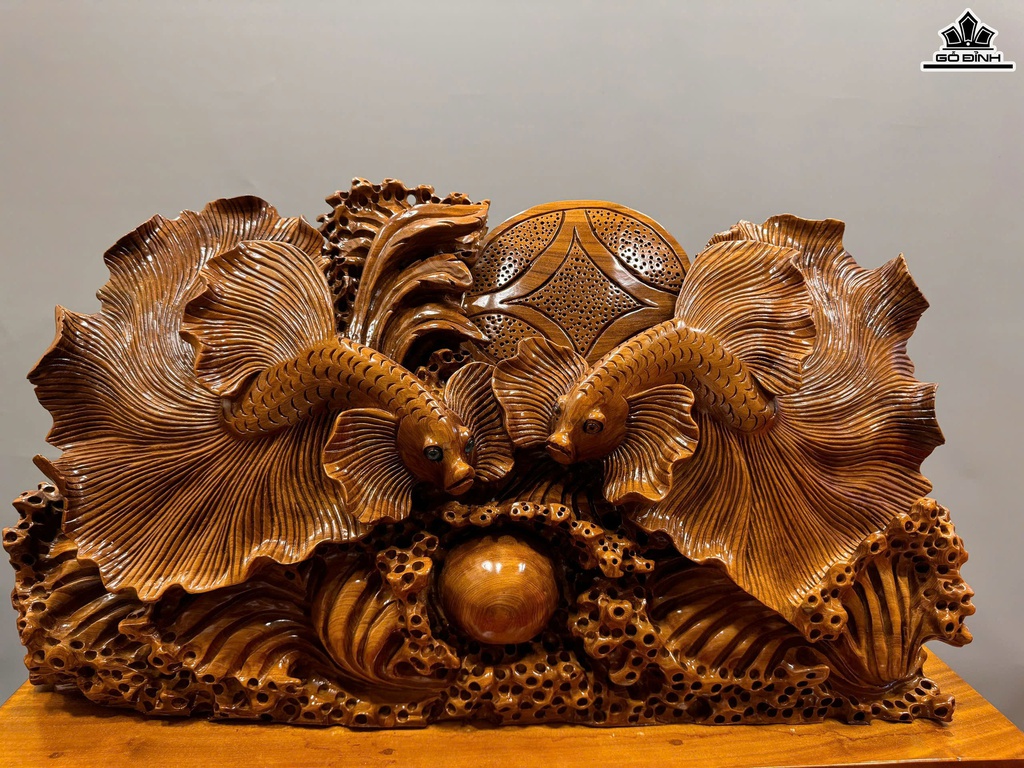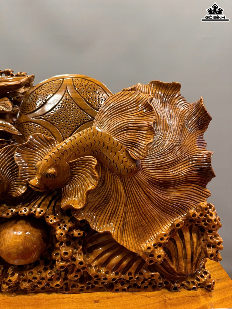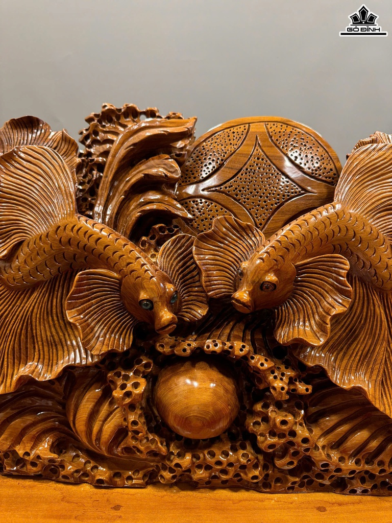 Tượng Cá Xiêm Gỗ Ngọc Am Cao Cả Kỷ 47 Ngang 66 Sâu 18 (cm) - Kỷ Cao 10 (cm)