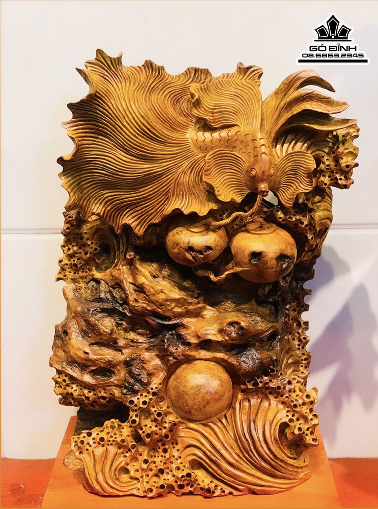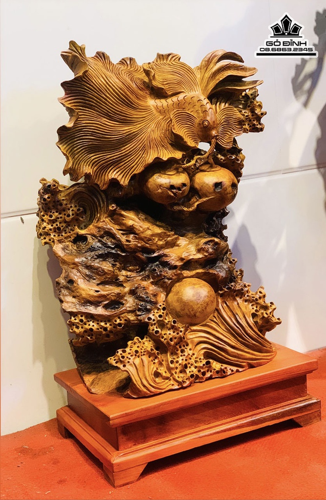 Tượng Cá Xiêm Gỗ Nu Hương Cao 66 Ngang 43 Sâu 30 (cm)
