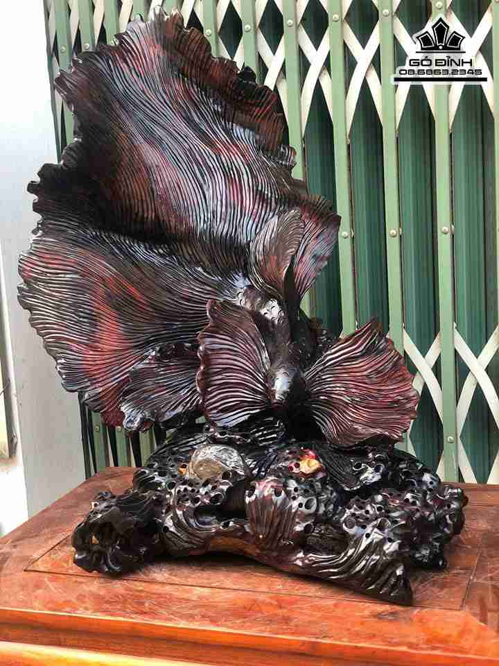 Tượng Cá Xiêm Gỗ Trắc Cao 69 Ngang 50 Sâu 36 (cm)