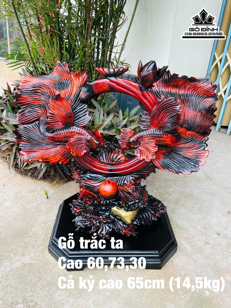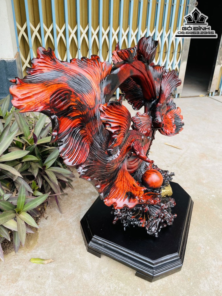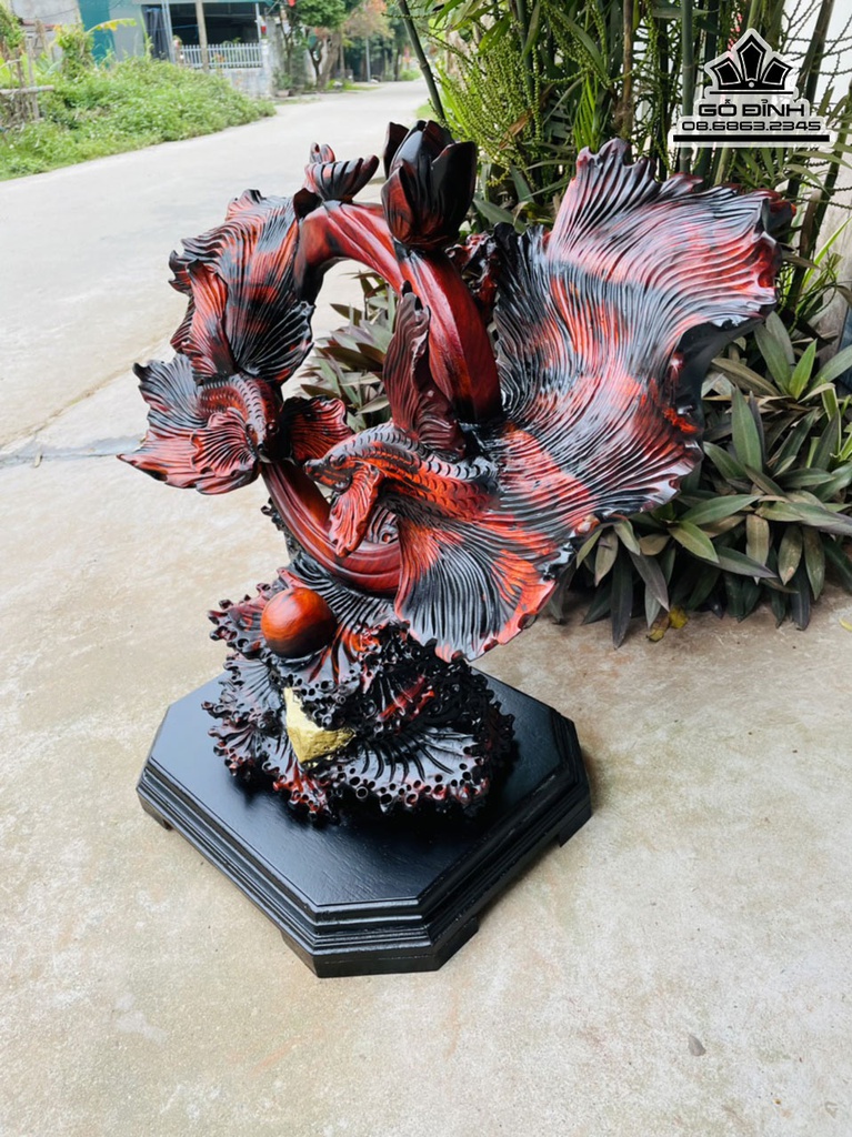 Tượng Cá Xiêm Gỗ Trắc Cao 30 Ngang 73 Sâu 30 (cm)