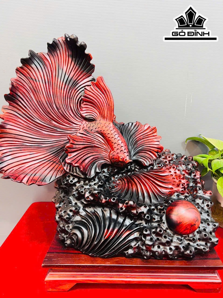 Tượng Cá Xiêm Gỗ Trắc Cao 50 Ngang 48 Sâu 28 (cm)