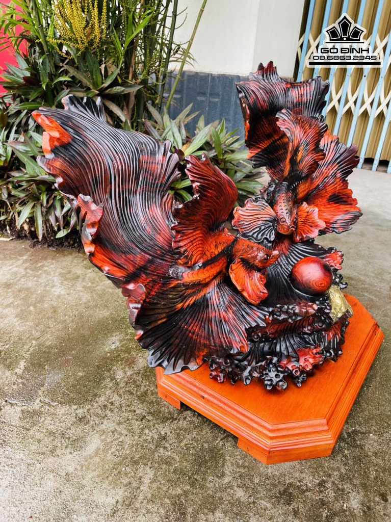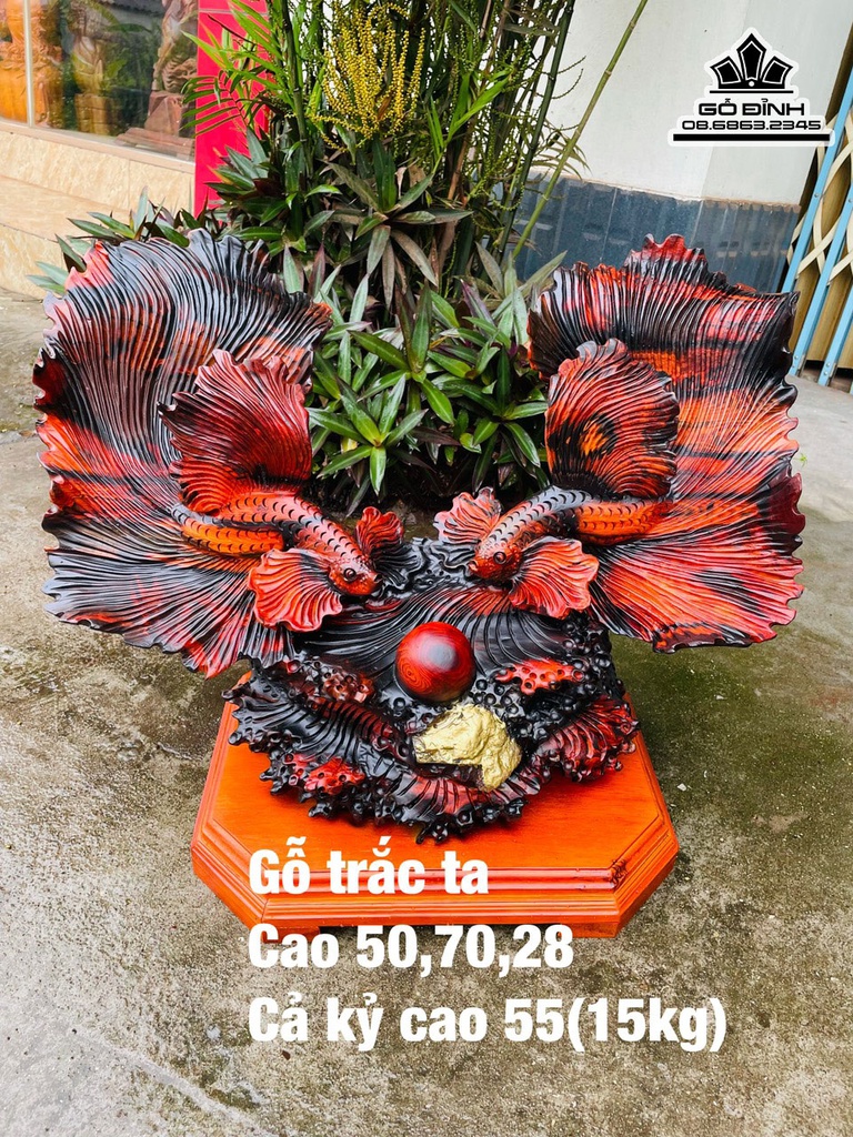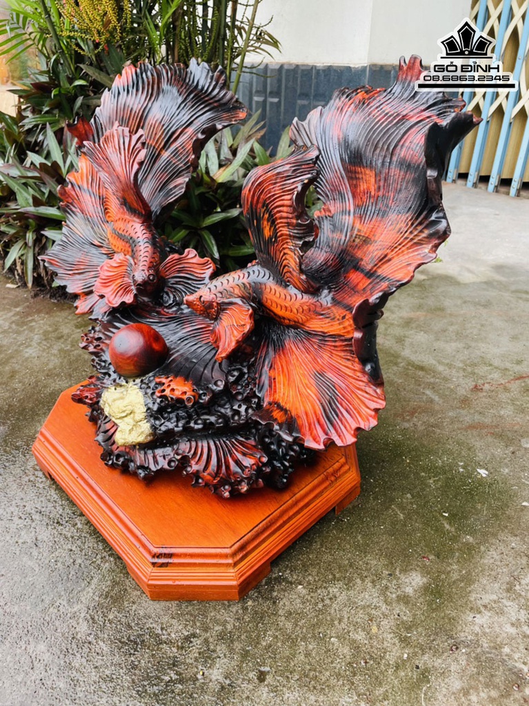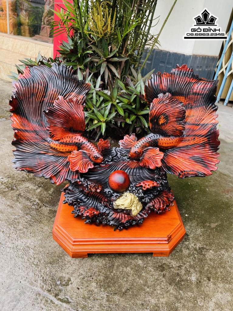 Tượng Cá Xiêm Gỗ Trắc Cao 50 Ngang 70 Sâu 28 (cm)