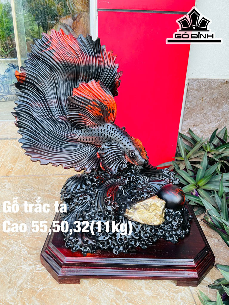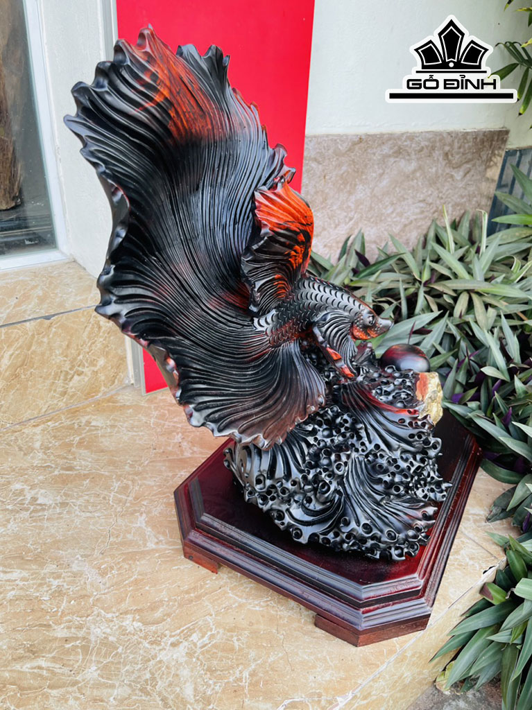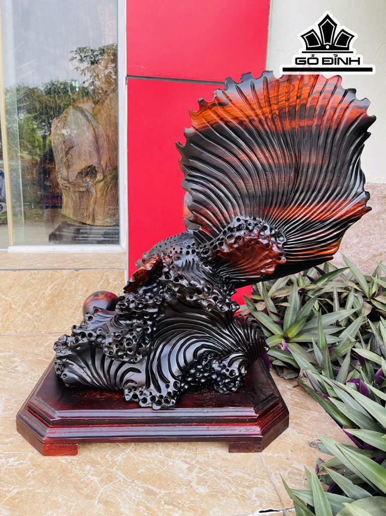 Tượng Cá Xiêm Gỗ Trắc Cao 55 Ngang 50 Sâu 32 (cm)