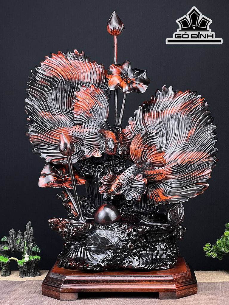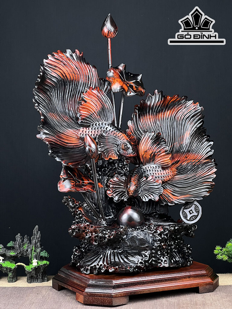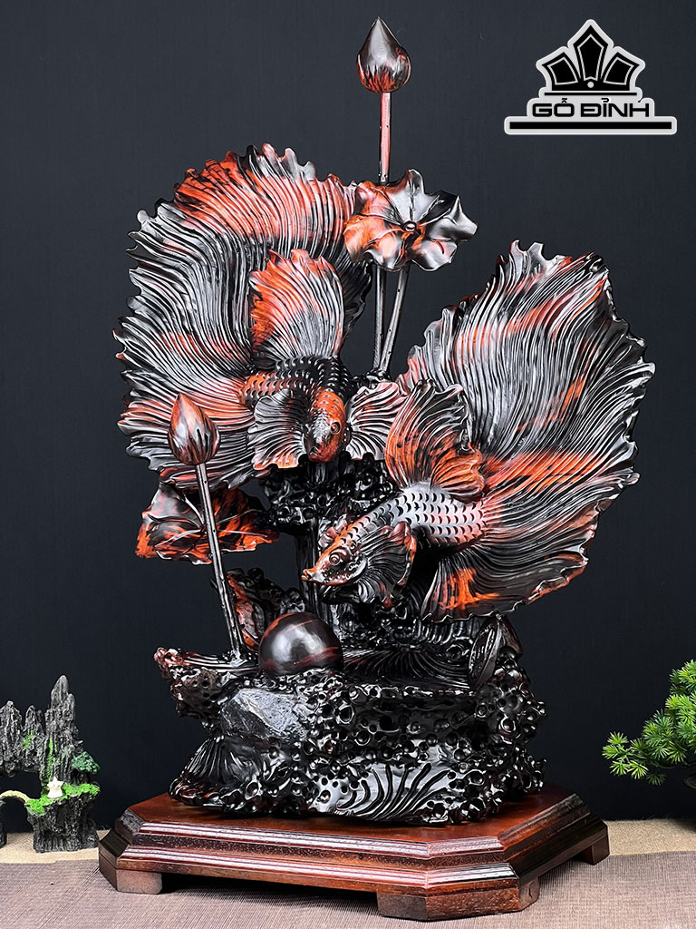 Tượng Cá Xiêm Gỗ Trắc Cao 81 Ngang 57 Sâu 33 (cm)