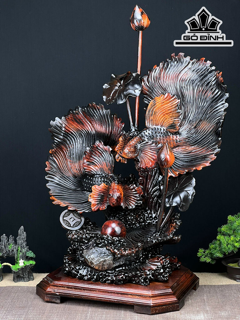 Tượng Cá Xiêm Gỗ Trắc Cao Cả Kỷ 84 Ngang 57 Sâu 33 (cm)