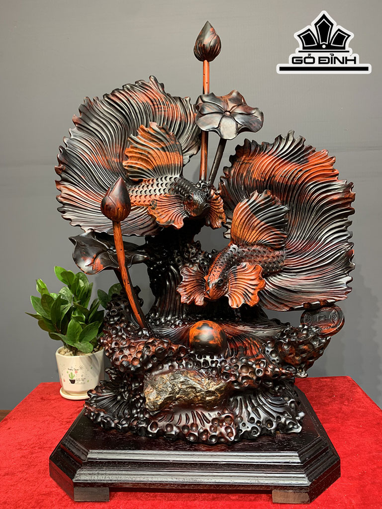 Tượng Cá Xiêm Đôi Gỗ Trắc Cao 76 Ngang 55 Sâu 34 (cm)