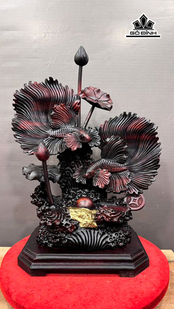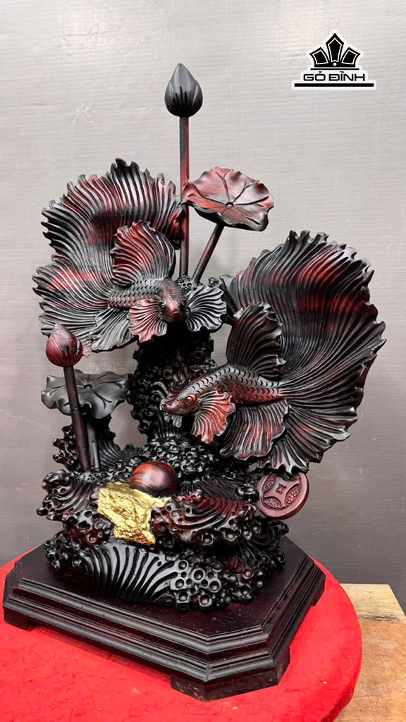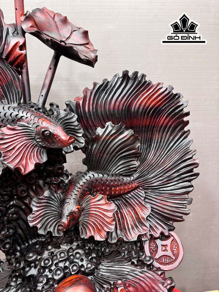 Tượng Cá Xiêm Tài Lộc Gỗ Trắc Cao Cả Kỷ 80 Ngang 58 Sâu 25 - Kỷ Cao 7 (cm)