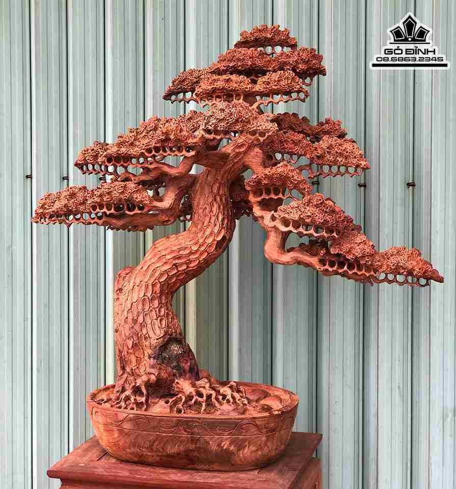 Tượng Cây Tùng Bon Sai Gỗ Hương Cao 72 Ngang 75 Sâu 25 (cm)