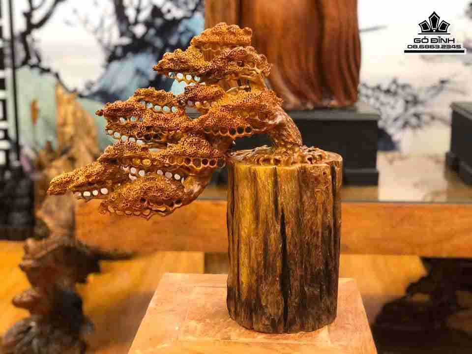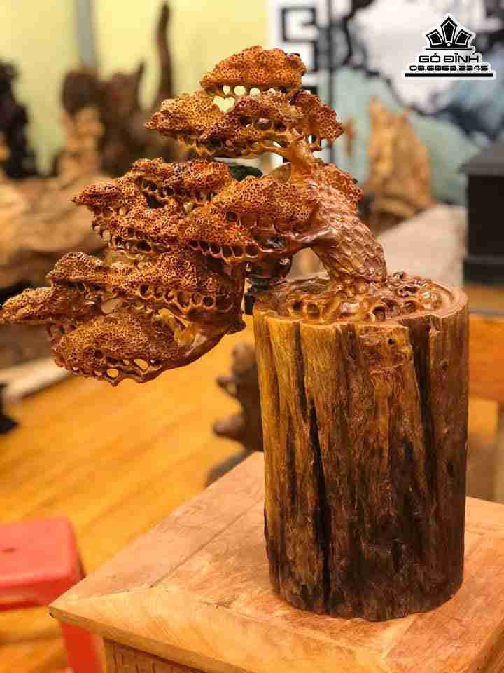 Tượng Cây Tùng Gỗ Hương Cao 48 Ngang 50 Sâu 20 (cm)