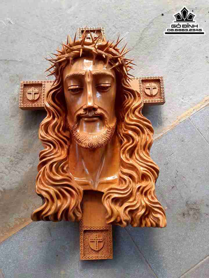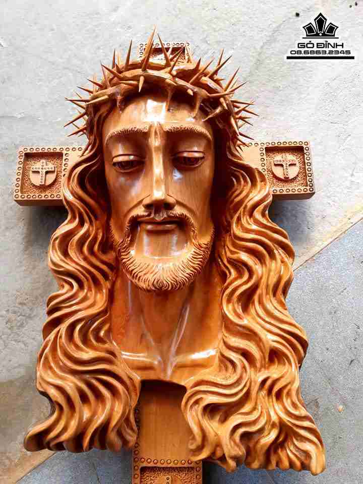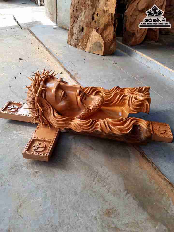 Tượng Chân Dung Chúa Gỗ Trai Cao 58 Rộng 36 Dày 20 Cây Thánh Giá Cao 85 Rộng 50 (cm)
