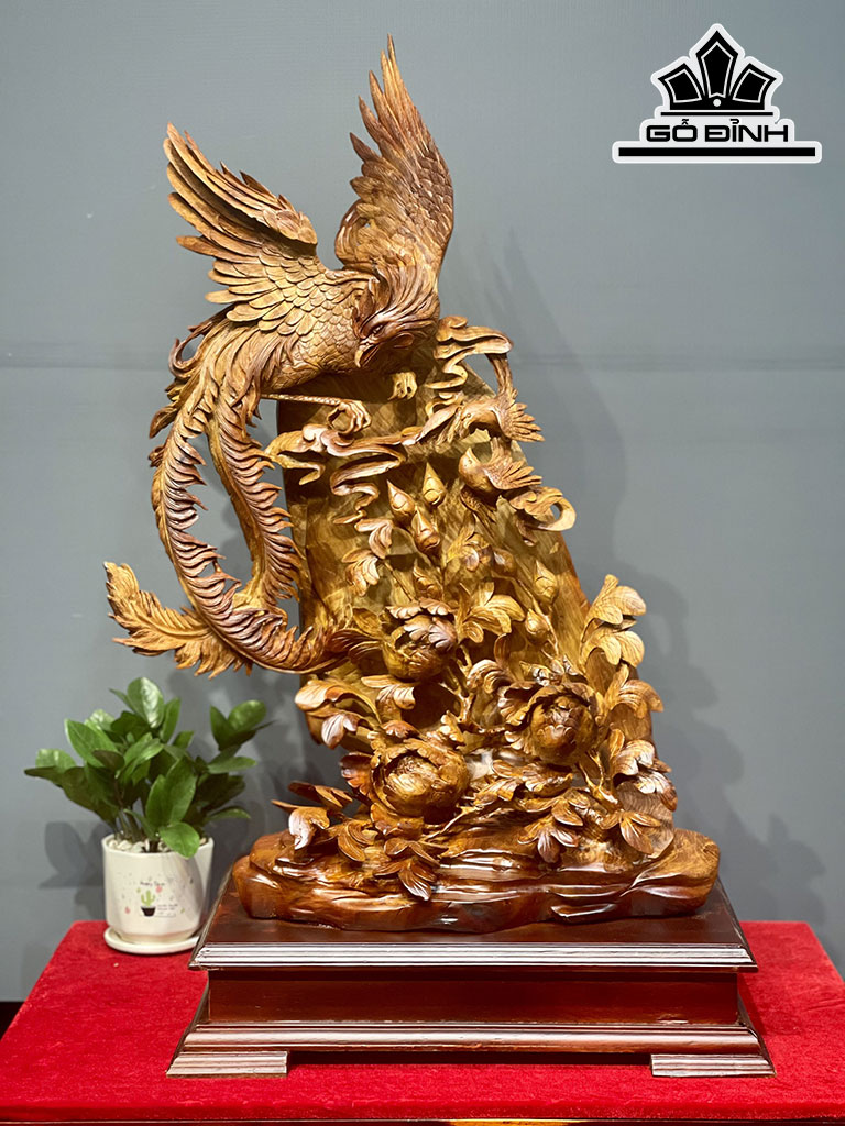 Tượng Chim Phượng Hoàng Gỗ Hương Cao 85 Ngang 48 Sâu 33 Kỷ Cao 10 (cm)