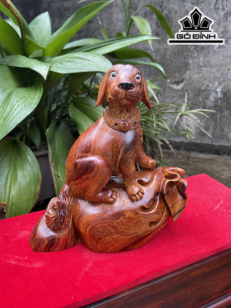 Tượng Chó Gỗ Cẩm Cao 30 Ngang 27 Sâu 12 (cm)