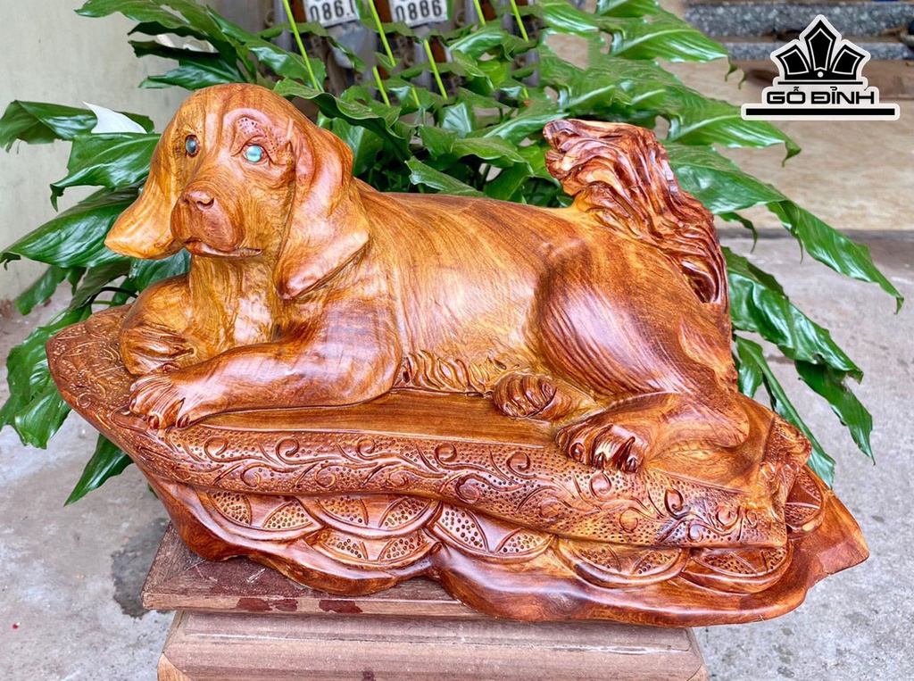 Tượng Chó Gỗ Hương Cao 22 Ngang 44 Sâu 19 (cm)