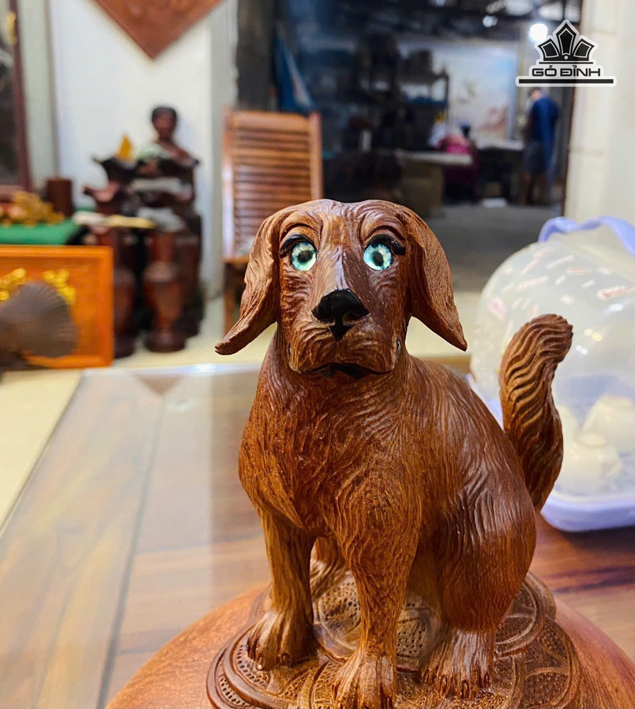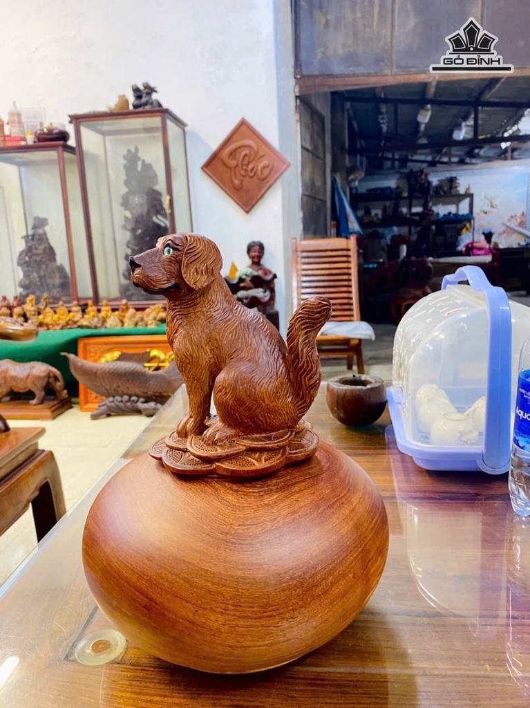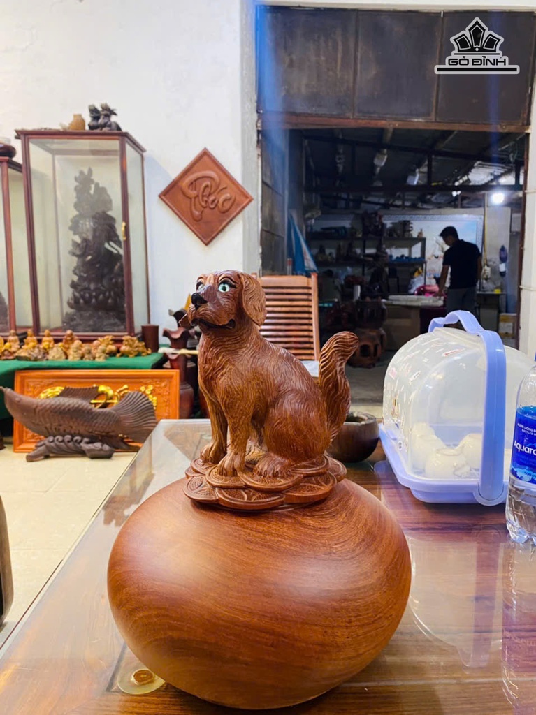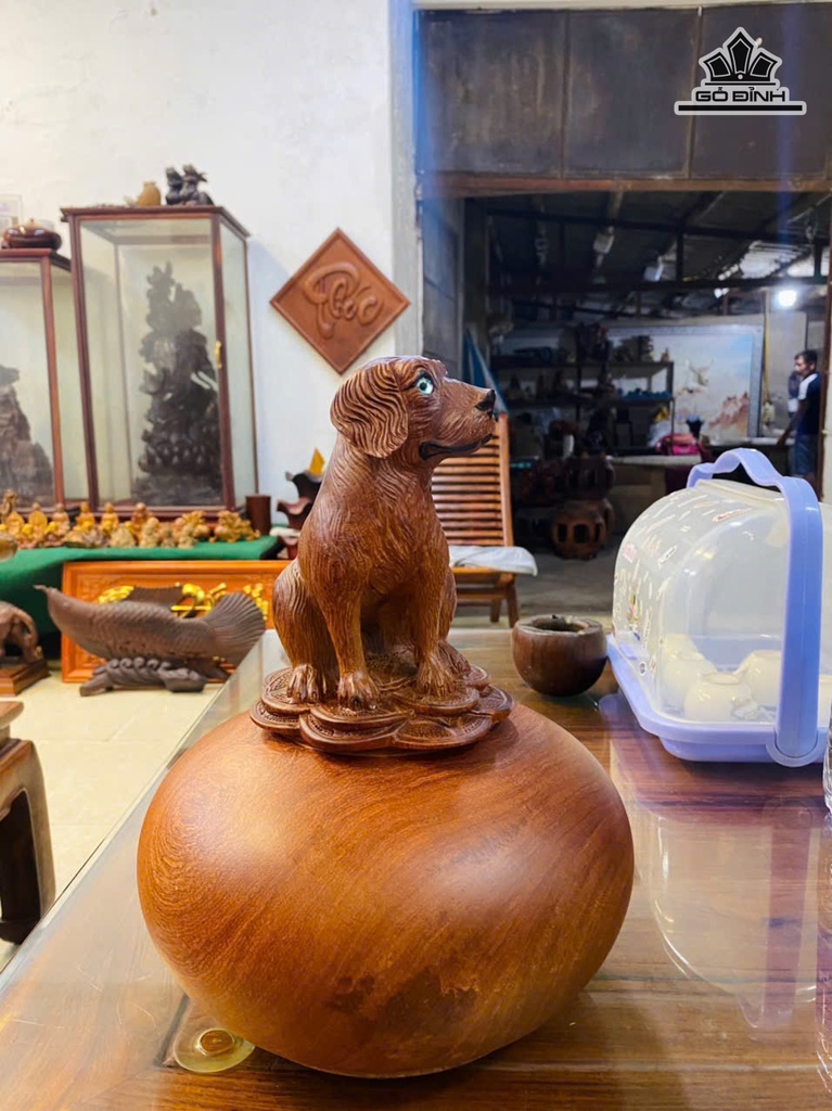 Tượng Chó Gỗ Hương Cao 30 Đường Kính 24 (cm)