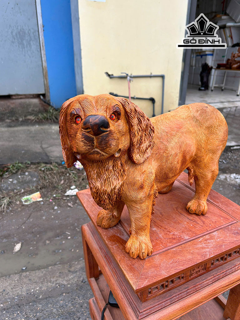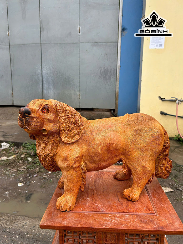 Tượng Chó Gỗ Hương Cao 32 Ngang 52 Sâu 18 (cm)