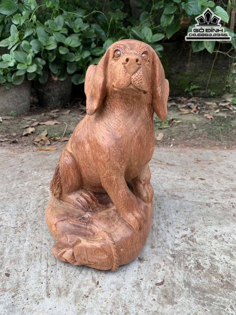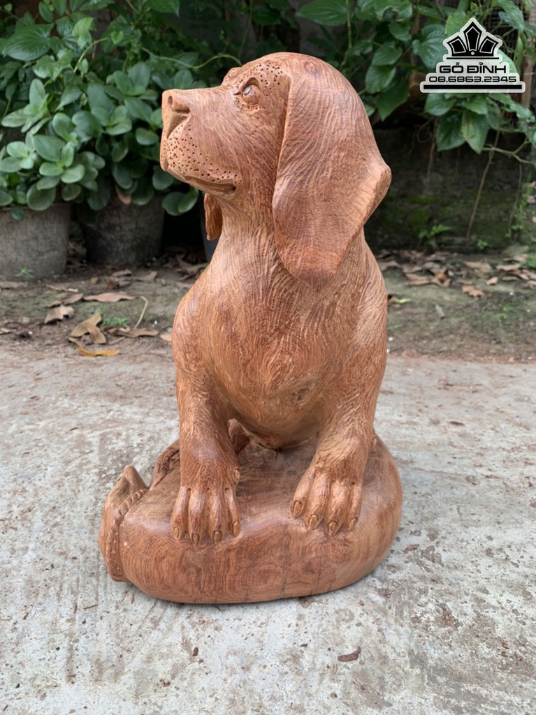 Tượng Chó Gỗ Hương Cao 33 Ngang 23 Sâu 25 (cm)