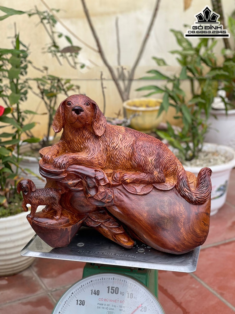 Tượng Chó Gỗ Hương Cao 40 Ngang 48 Sâu 26 (cm)