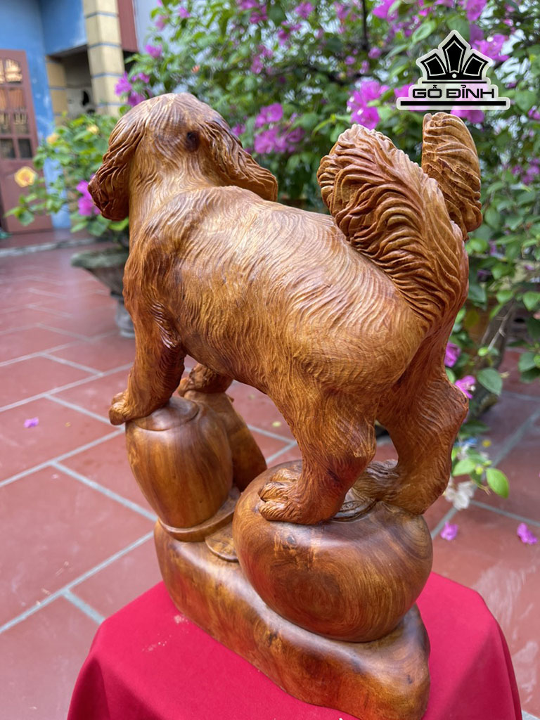 Tượng Chó Gỗ Hương Cao 42 Ngang 26 Sâu 14 (cm)