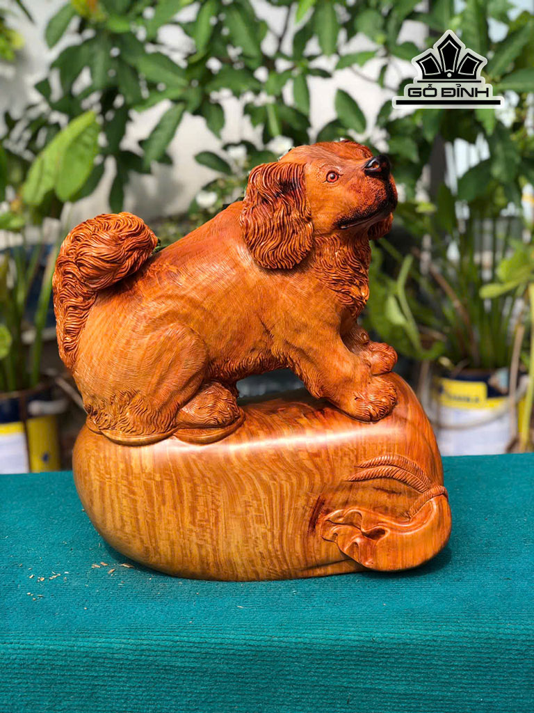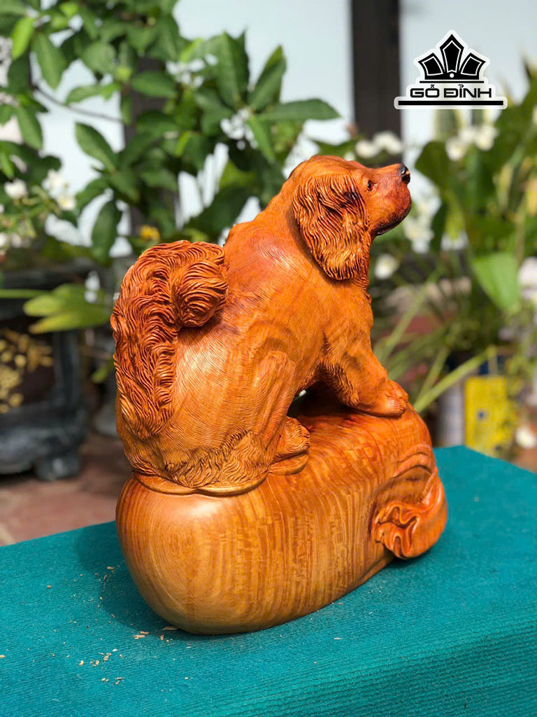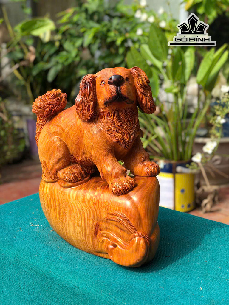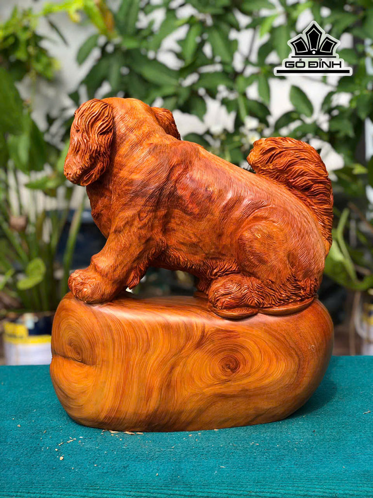 Tượng Chó Gỗ Hương Cao 42 Ngang 37 Sâu 16 (cm)