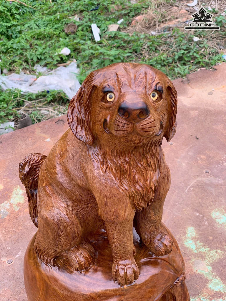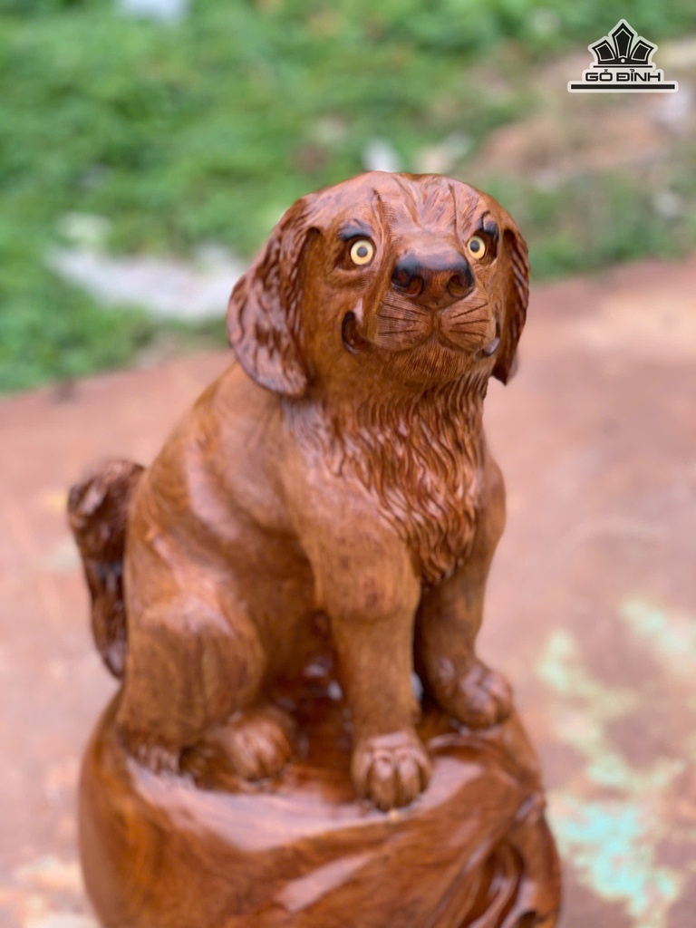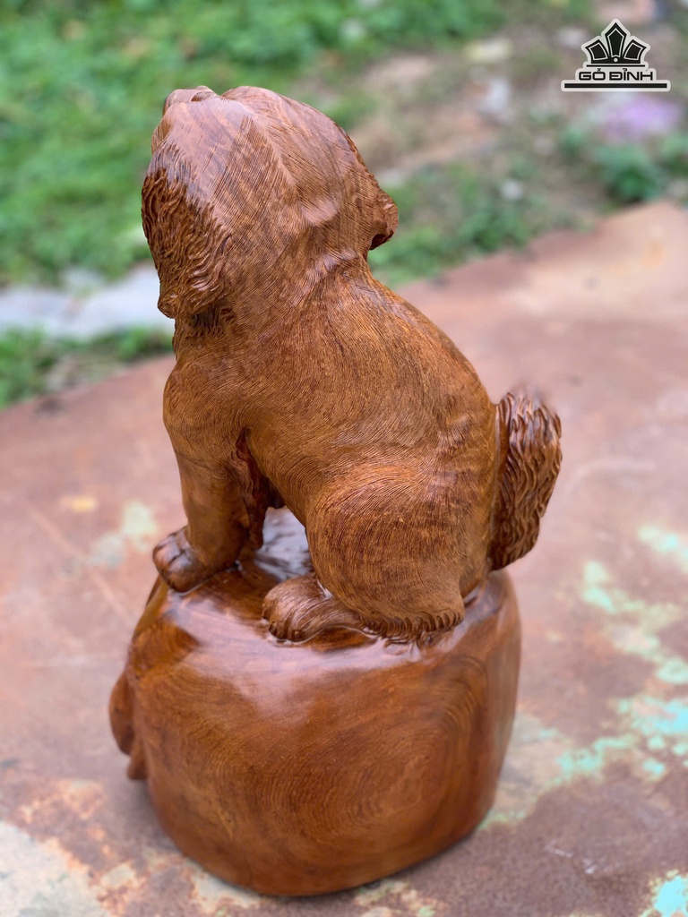 Tượng Chó Gỗ Hương Cao 47 Ngang 28 Sâu 28 (cm)