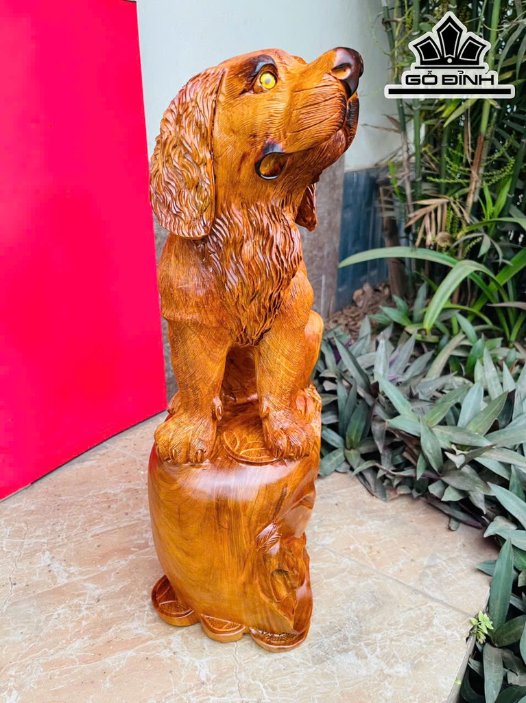 Tượng Chó Gỗ Hương Cao 50 Ngang 23 Sâu 16 (cm)