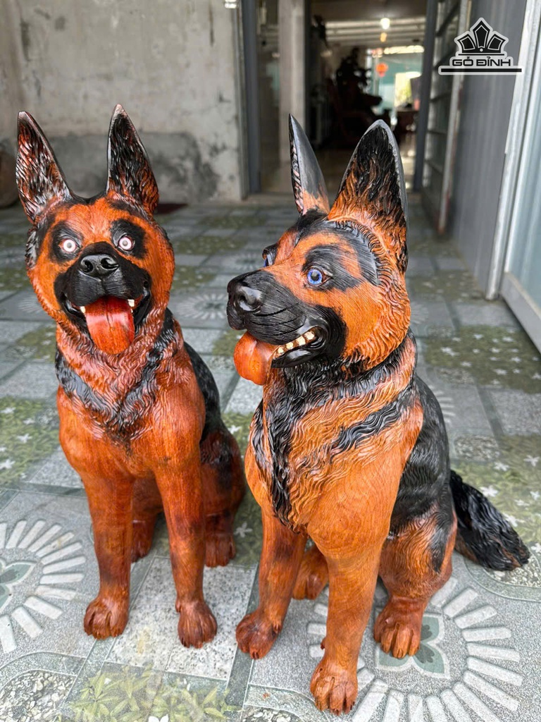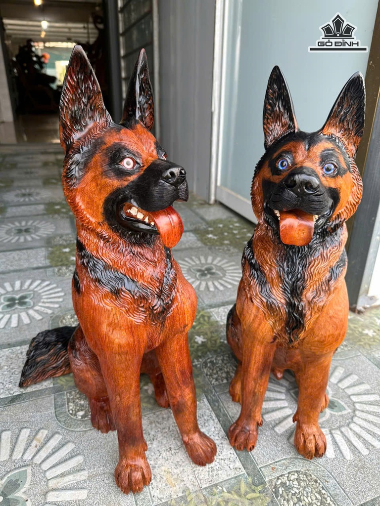 Tượng Chó Gỗ Hương Cao 52 Ngang 25 Sâu 35 (cm)