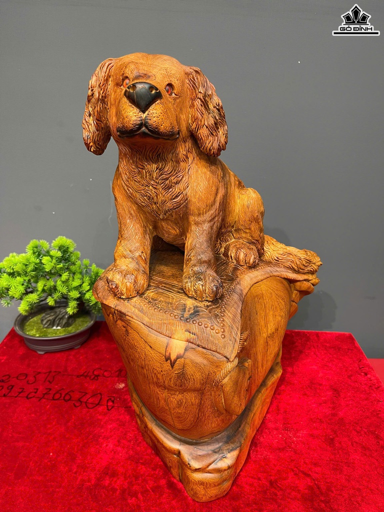 Tượng Chó Gỗ Hương Cao 52 Ngang 31 Sâu 23 (cm)
