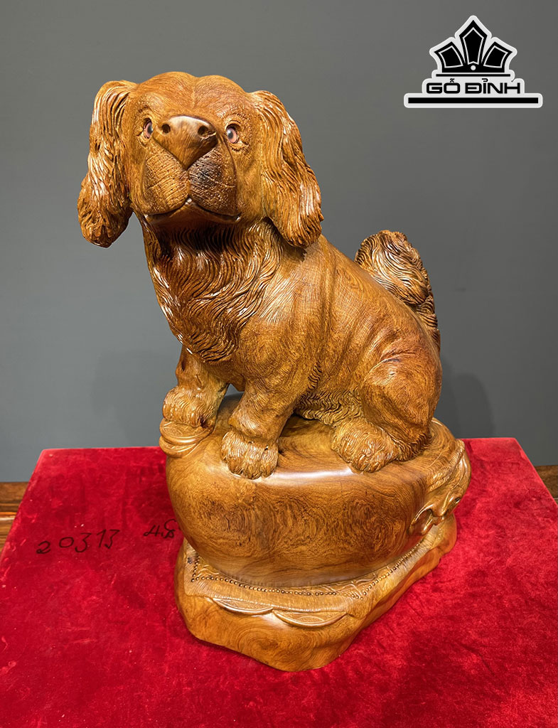 Tượng Chó Gỗ Hương Cao 55 Ngang 36 Sâu 21 (cm)