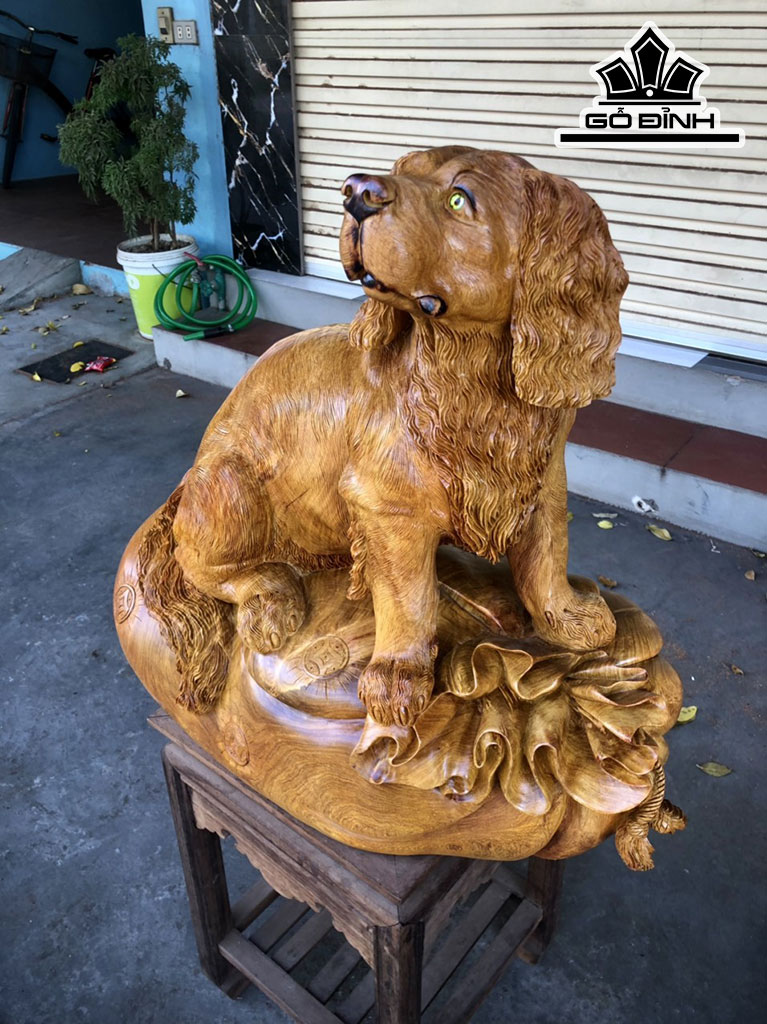 Tượng Chó Gỗ Hương Cao 60 Ngang 70 Sâu 32 (cm)