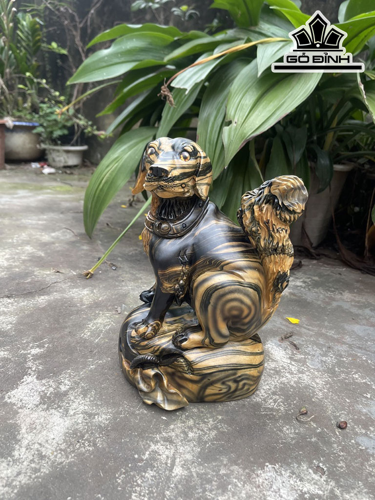 Tượng Chó Gỗ Mun Hoa Cao 26 Ngang 16 Sâu 14 (cm)