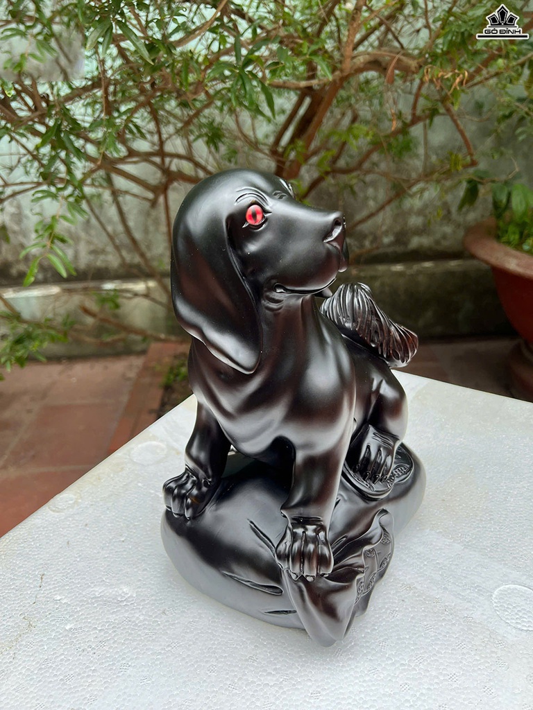 Tượng Chó Gỗ Mun Hoa Cao 31 Ngang 20 Sâu 16 (cm)