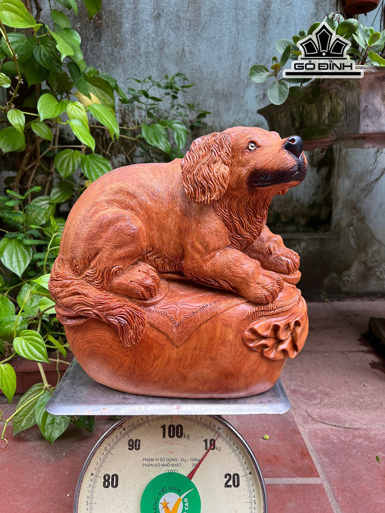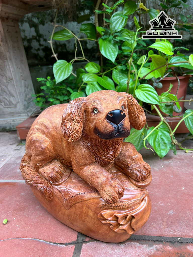 Tượng Chó Gỗ Ngọc Am Cao 35 Ngang 35 Sâu 23 (cm)