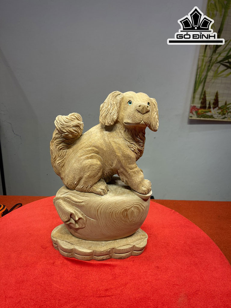 Tượng Chó Gỗ Ngọc Am Cao 38 Ngang 25 Sâu 15 (cm)