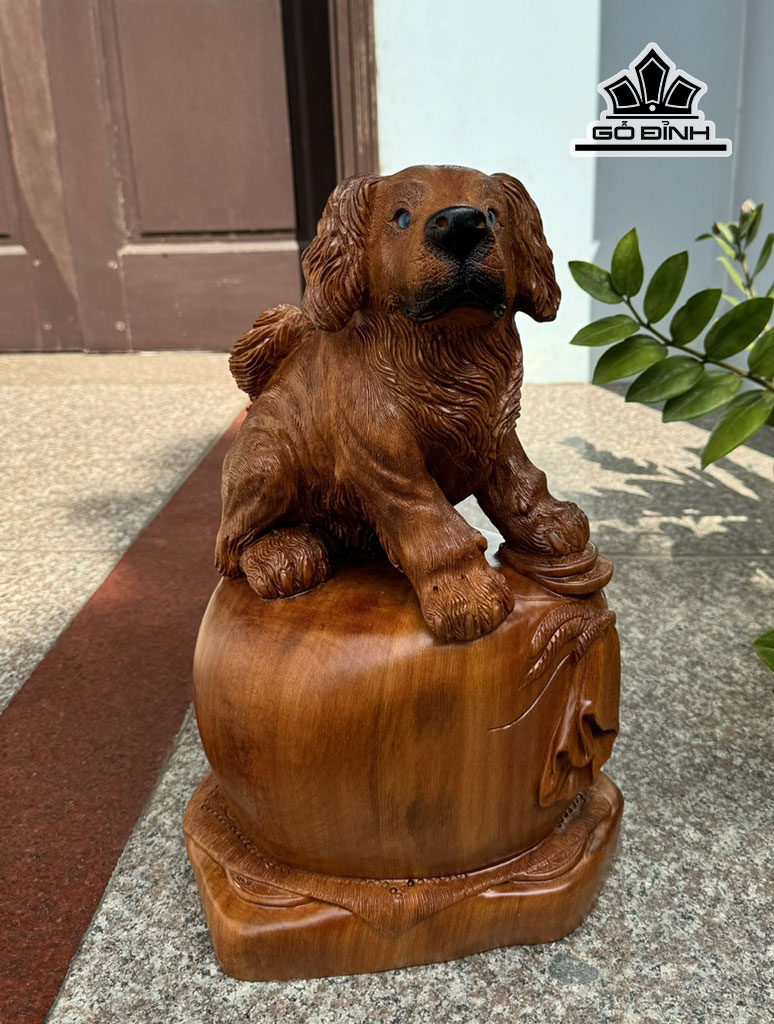 Tượng Chó Gỗ Ngọc Am Cao 43 Ngang 24 Sâu 22 (cm)
