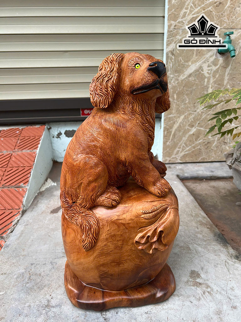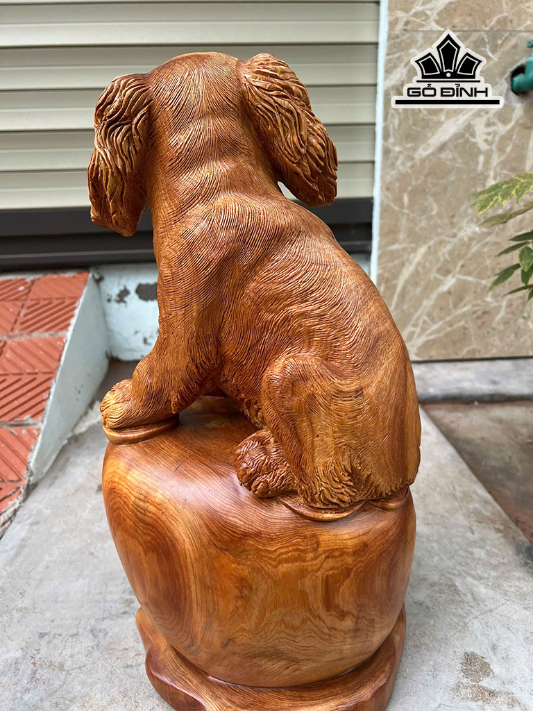 Tượng Chó Gỗ Ngọc Am Cao 47 Ngang 25 Sâu 23 (cm)