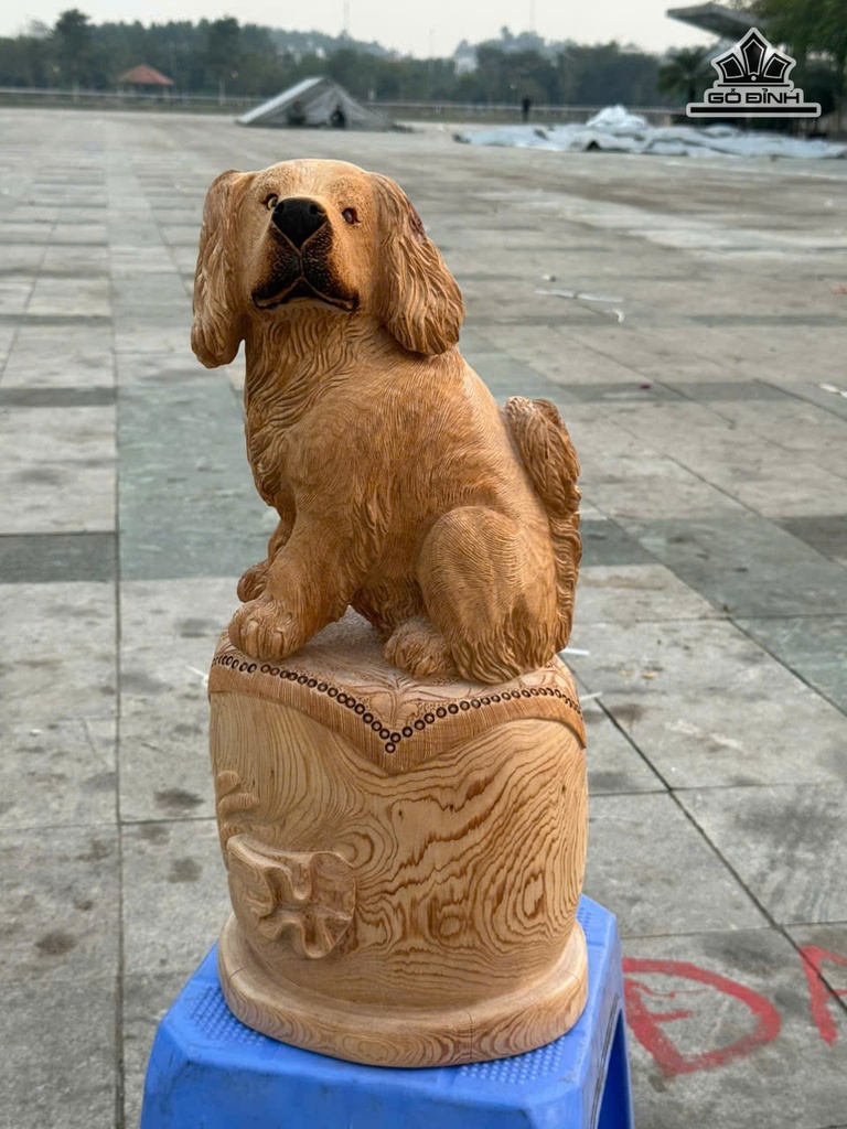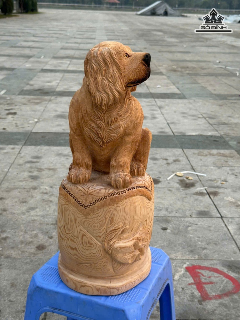 Tượng Chó Gỗ Ngọc Am Cao 52 Ngang 24 Sâu 20 (cm)