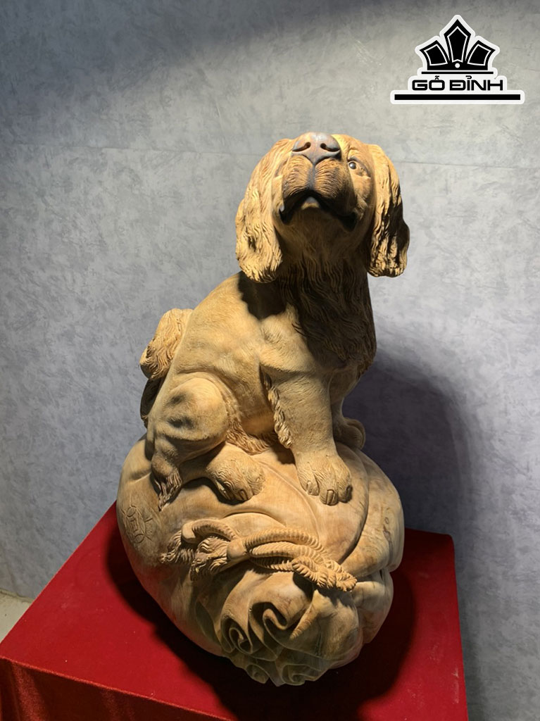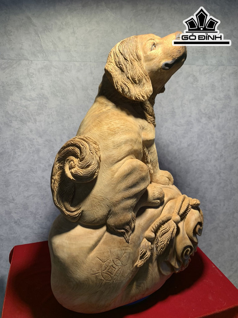 Tượng Chó Gỗ Ngọc Am Cao 63 Ngang 44 Sâu 32 (cm)