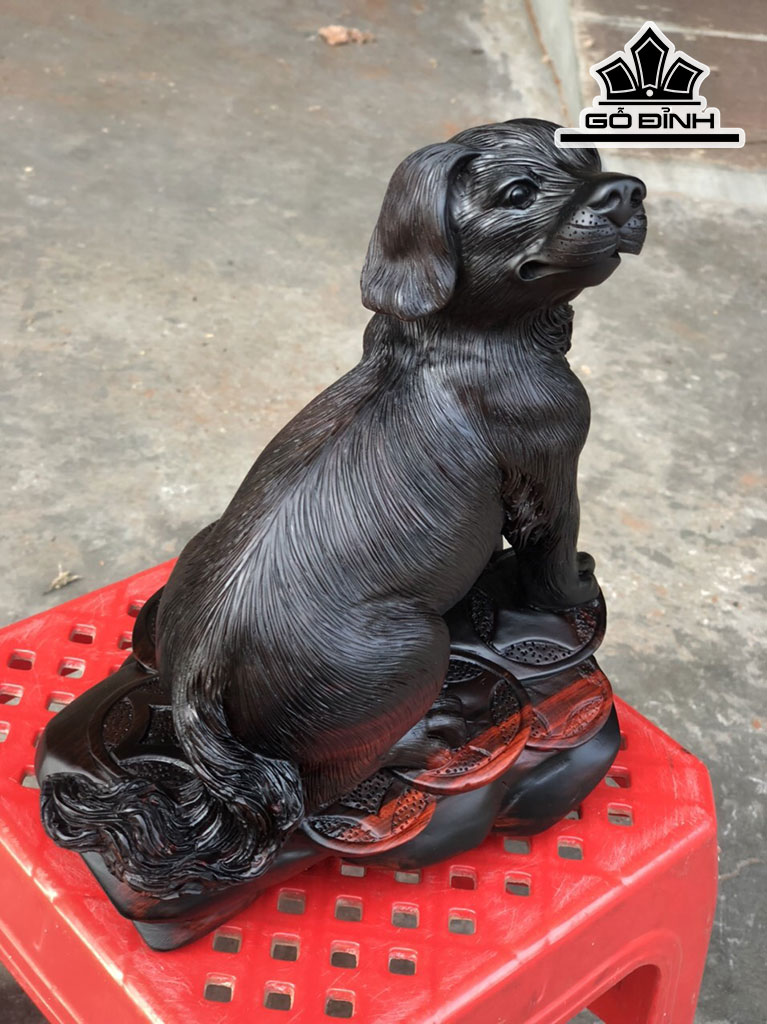 Tượng Chó Gỗ Trắc Cao 25 Ngang 23 Sâu 15 (cm)