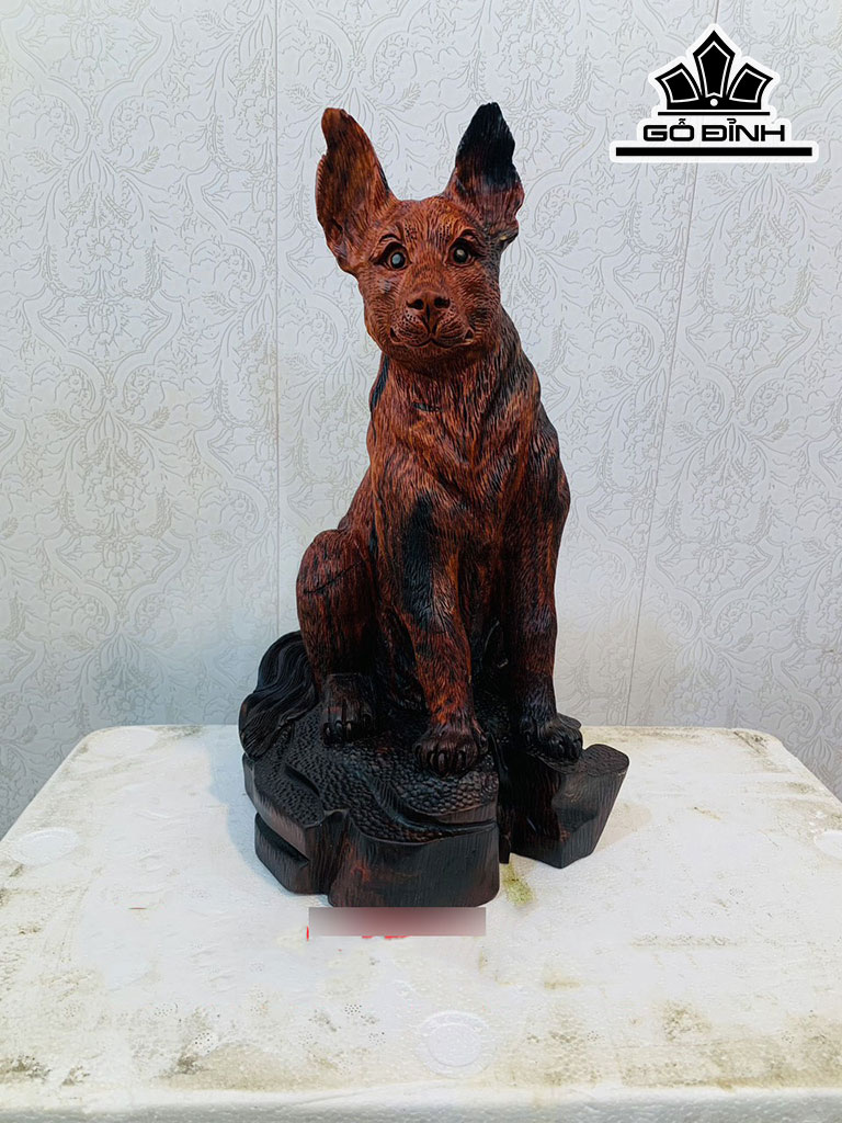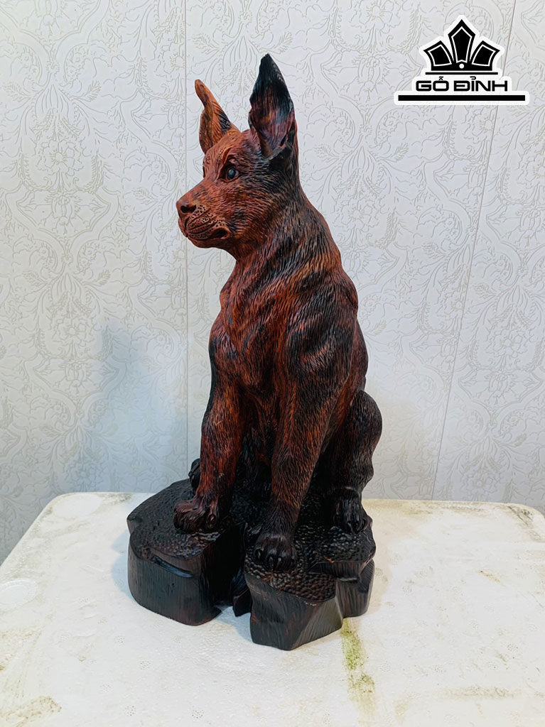 Tượng Chó Gỗ Trắc Cao 33 Ngang 23 Sâu 18 (cm)