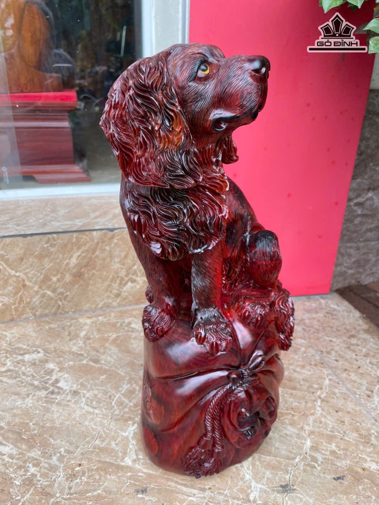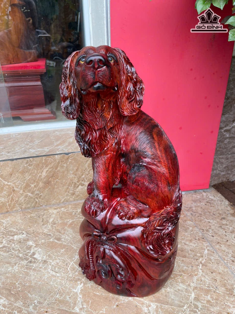 Tượng Chó Gỗ Trắc Cao 45 Ngang 20 Sâu 17 (cm)