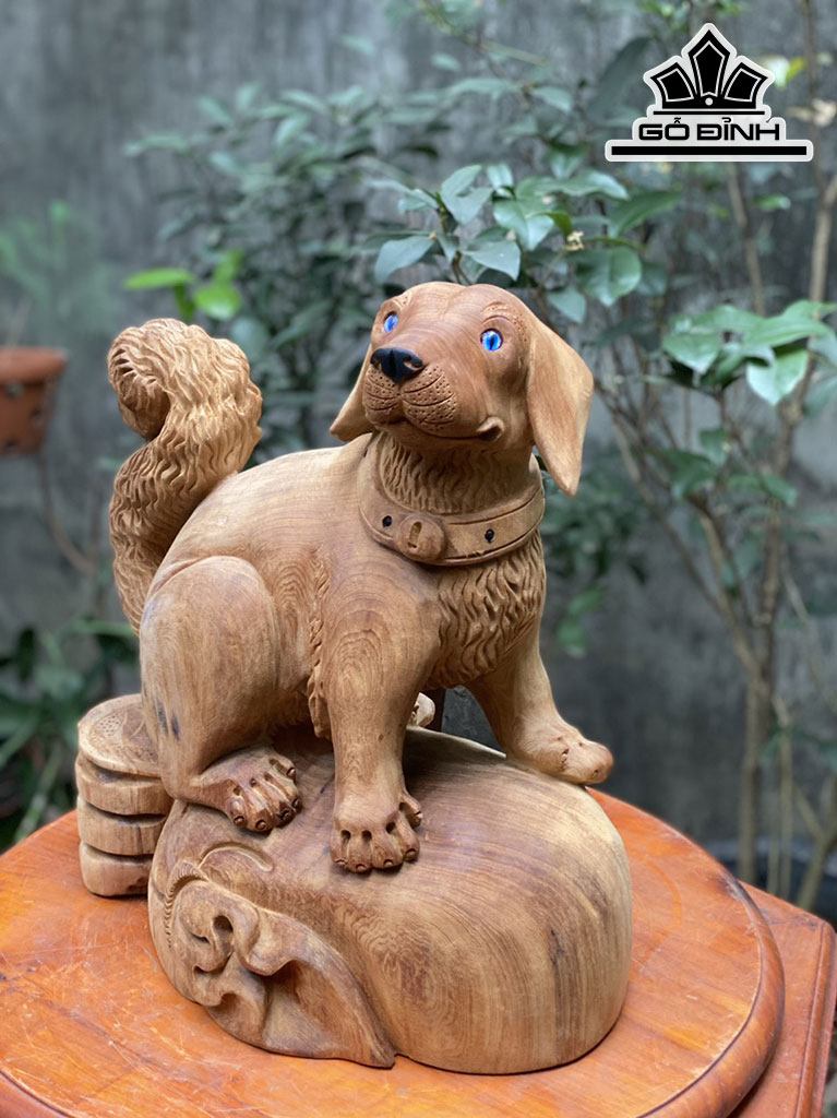 Tượng Chó Tài Lộc Gỗ Ngọc Am Cao 40 Ngang 40 Sâu 22 (cm)